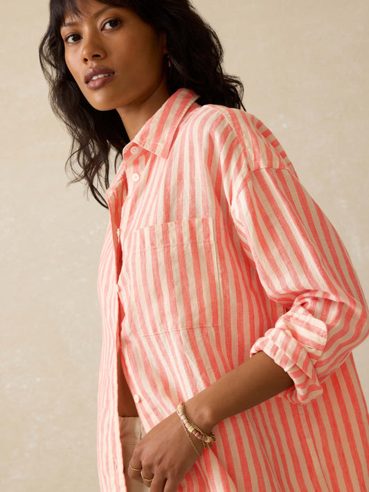 Laguna Linen Relaxed Shirt - Pink Lucy Stripe