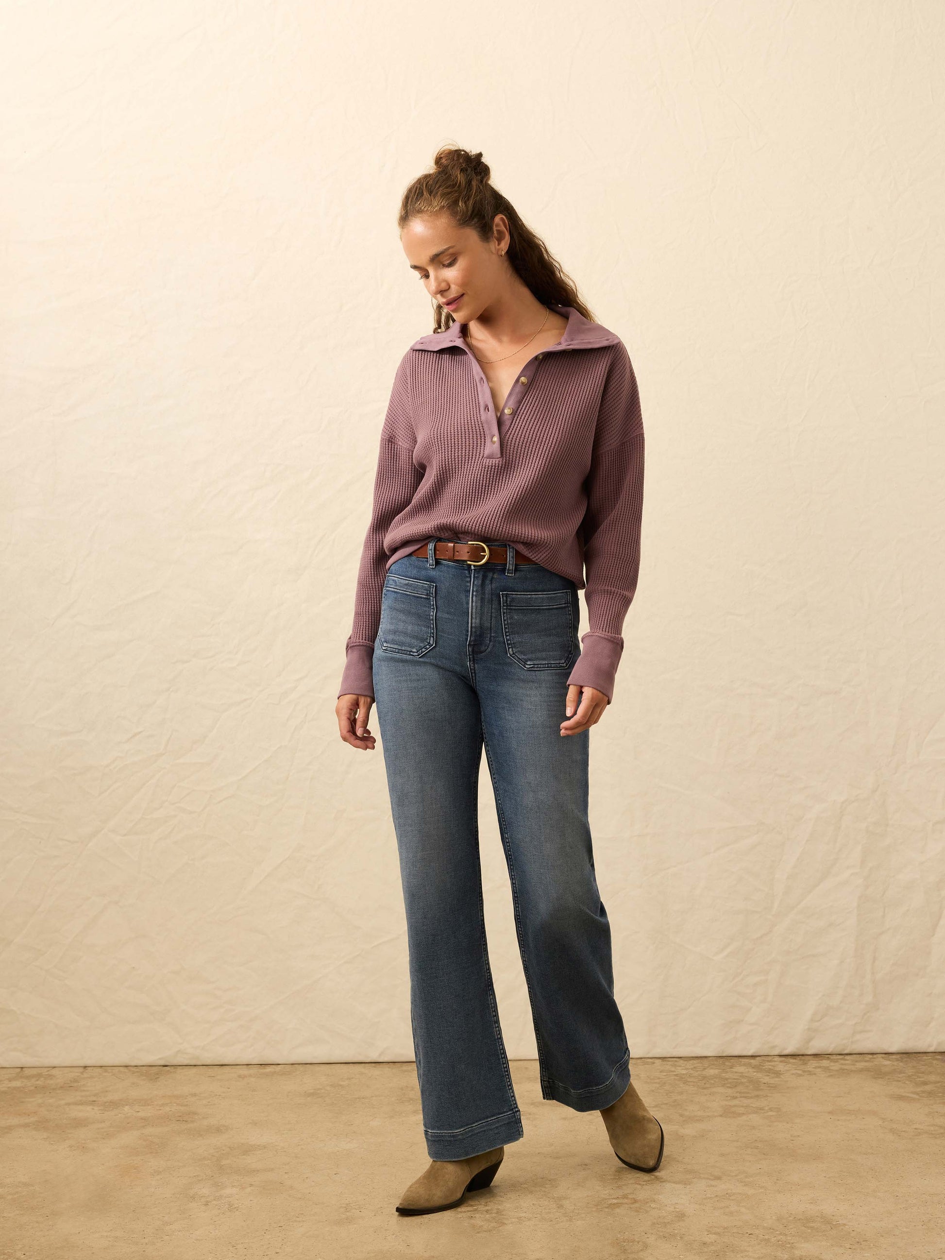 Our waffle-textured henley is made for those in-between days. The soft, textured fabric adds just the right amount of coziness while keeping things airy and comfortable. Designed with a casually laid back silhouette that pairs perfectly with your fave denim.
