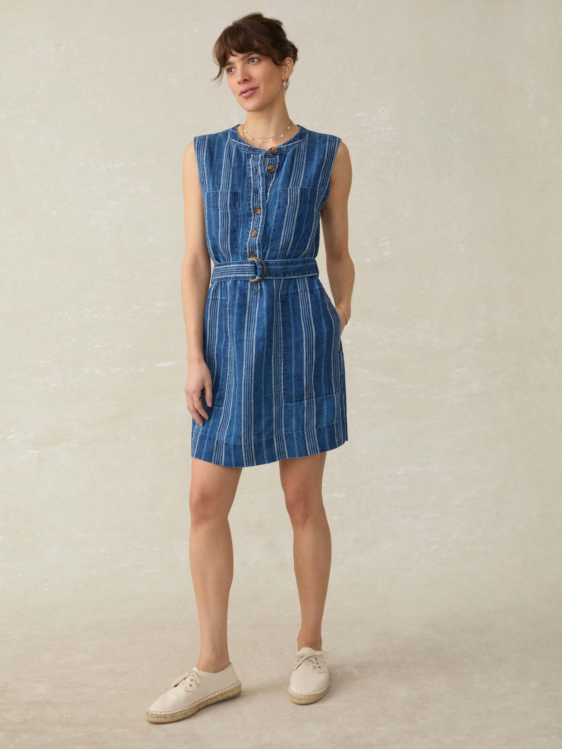 A fresh take on the utility dress, this tank silhouette combines rugged charm with effortless style. Featuring a mandarin collar, patch pockets, and an easy shape, it’s made from sustainably sourced European Flax™ linen—a premium, GMO-free fiber grown along the coastal lands from Normandy to Amsterdam. Fully traceable and responsibly farmed, this linen is then treated to our signature wash, resulting in a fabric that’s exceptionally soft, comfortable, and perfect for warm days.