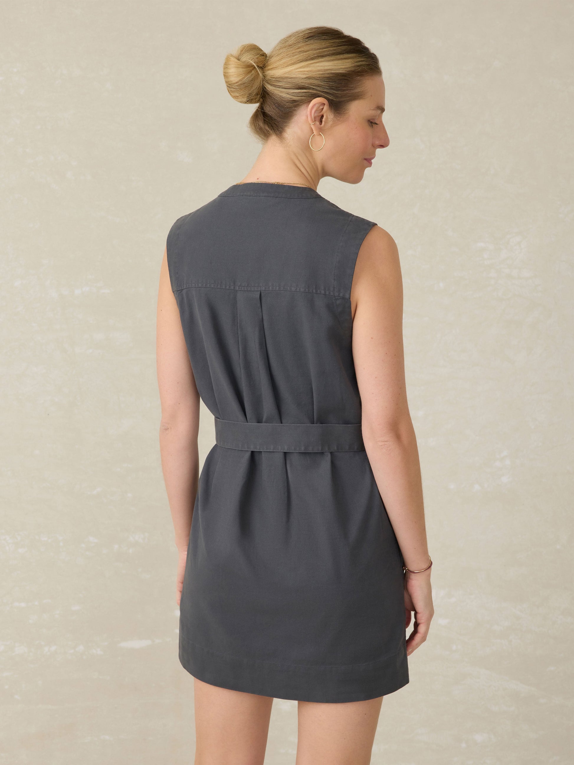 A versatile take on the classic utility dress, this tank silhouette blends laid-back ease with thoughtful details. Designed with a mandarin collar, patch pockets, and a flattering shape, it’s crafted from soft organic cotton with a hint of stretch for all-day comfort and a perfect fit. The breathable fabric is sustainably sourced and garment-washed for a lived-in feel from day one. Whether paired with sneakers for casual outings or sandals for summer nights, it’s a warm-weather staple that feels as good as it looks.