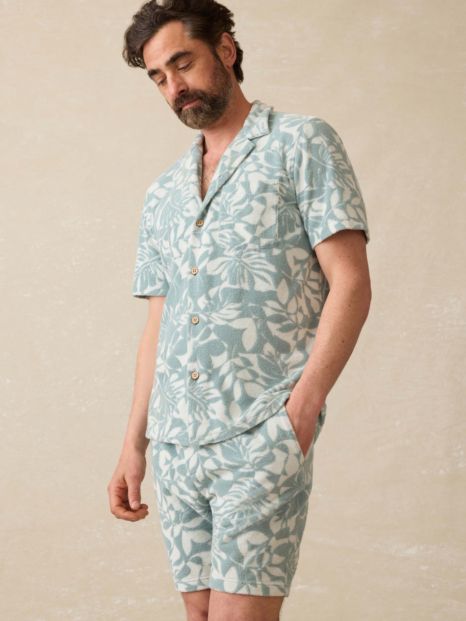 Cabana Towel Terry Sweatshort - Poolside Foliage Teal