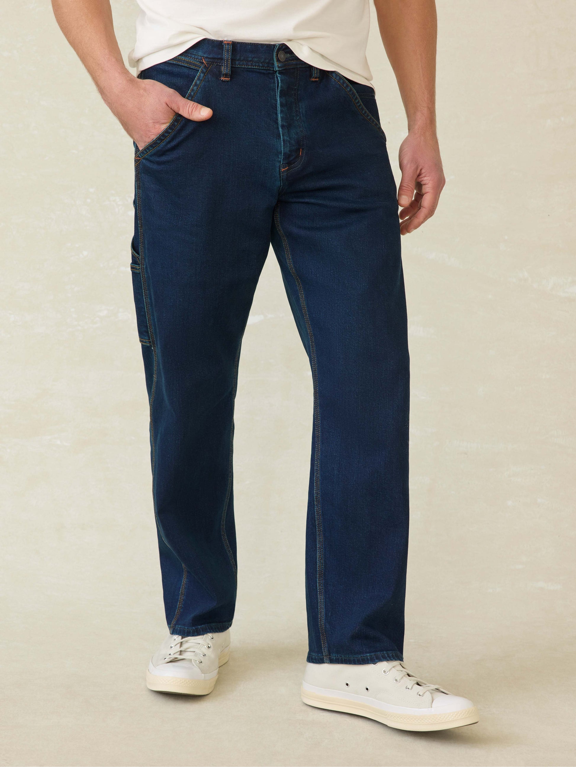 Built for the workbench, ready for the weekend. These carpenter-style jeans are tough as nails, with just the right amount of stretch to keep you moving. Classic hammer loop and utility pockets nod to their hardworking roots, while the durable denim feels lived-in from the start.