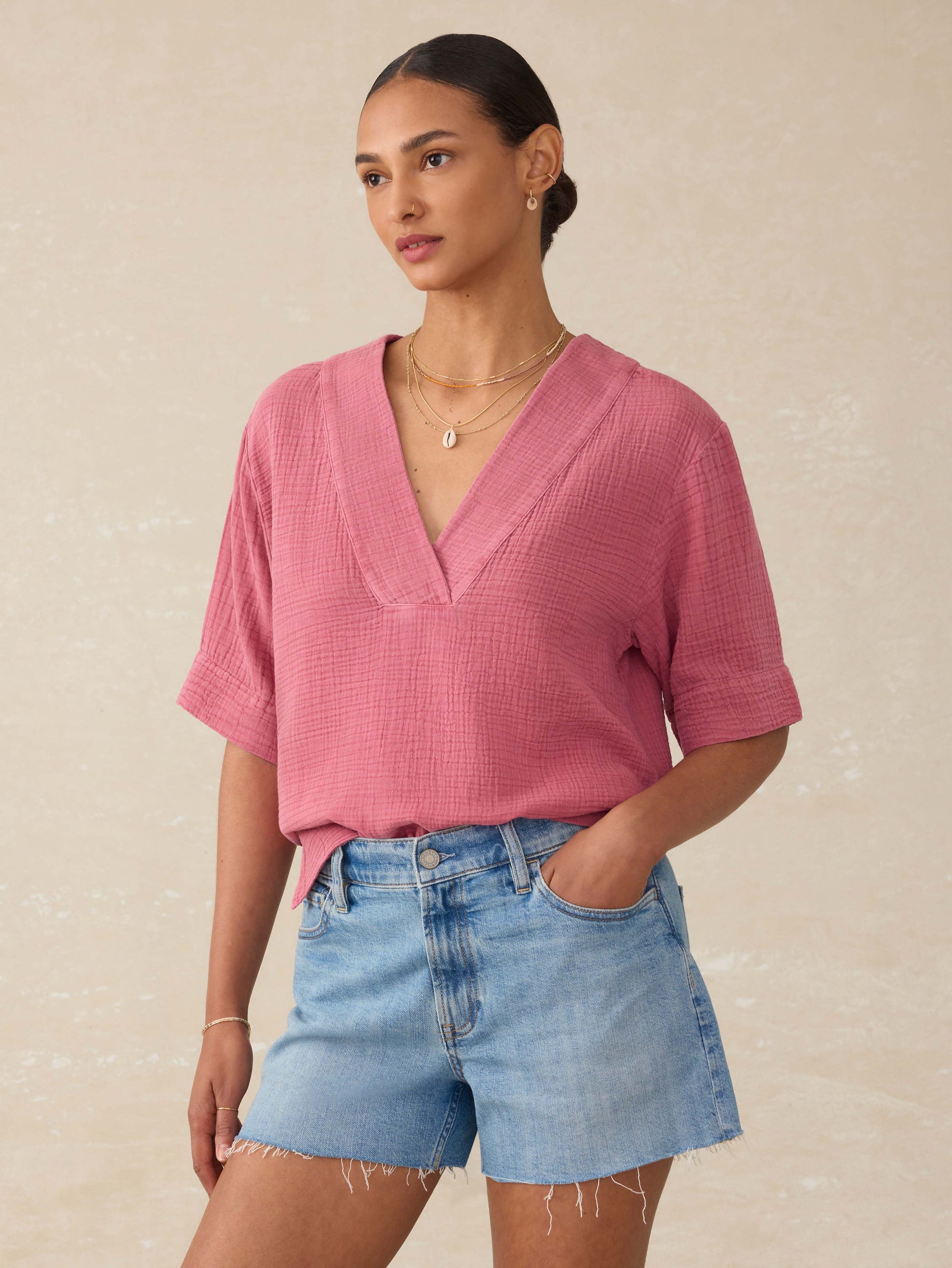 Dune Cotton Gauze Short Sleeve Popover - Heather Rose