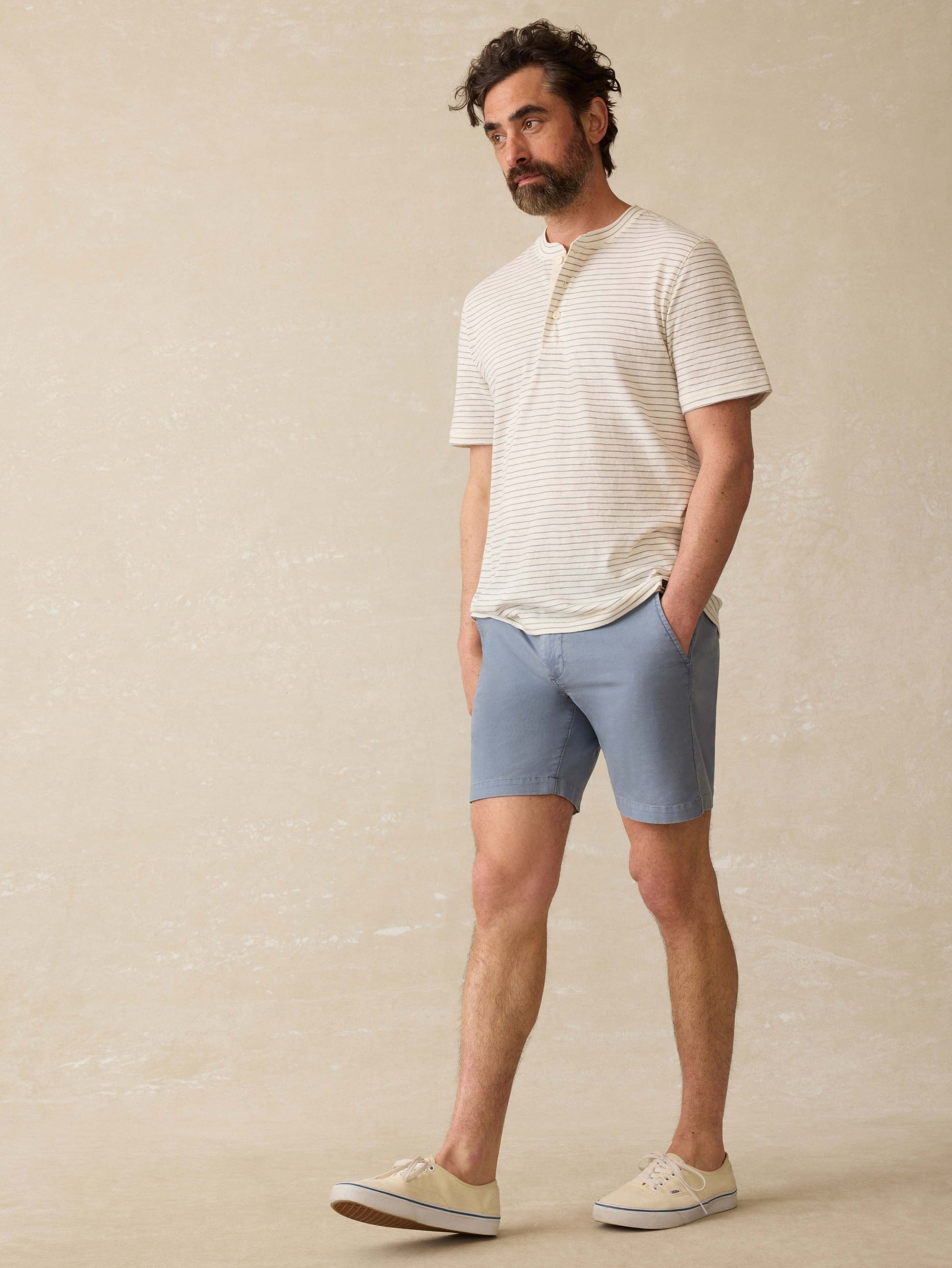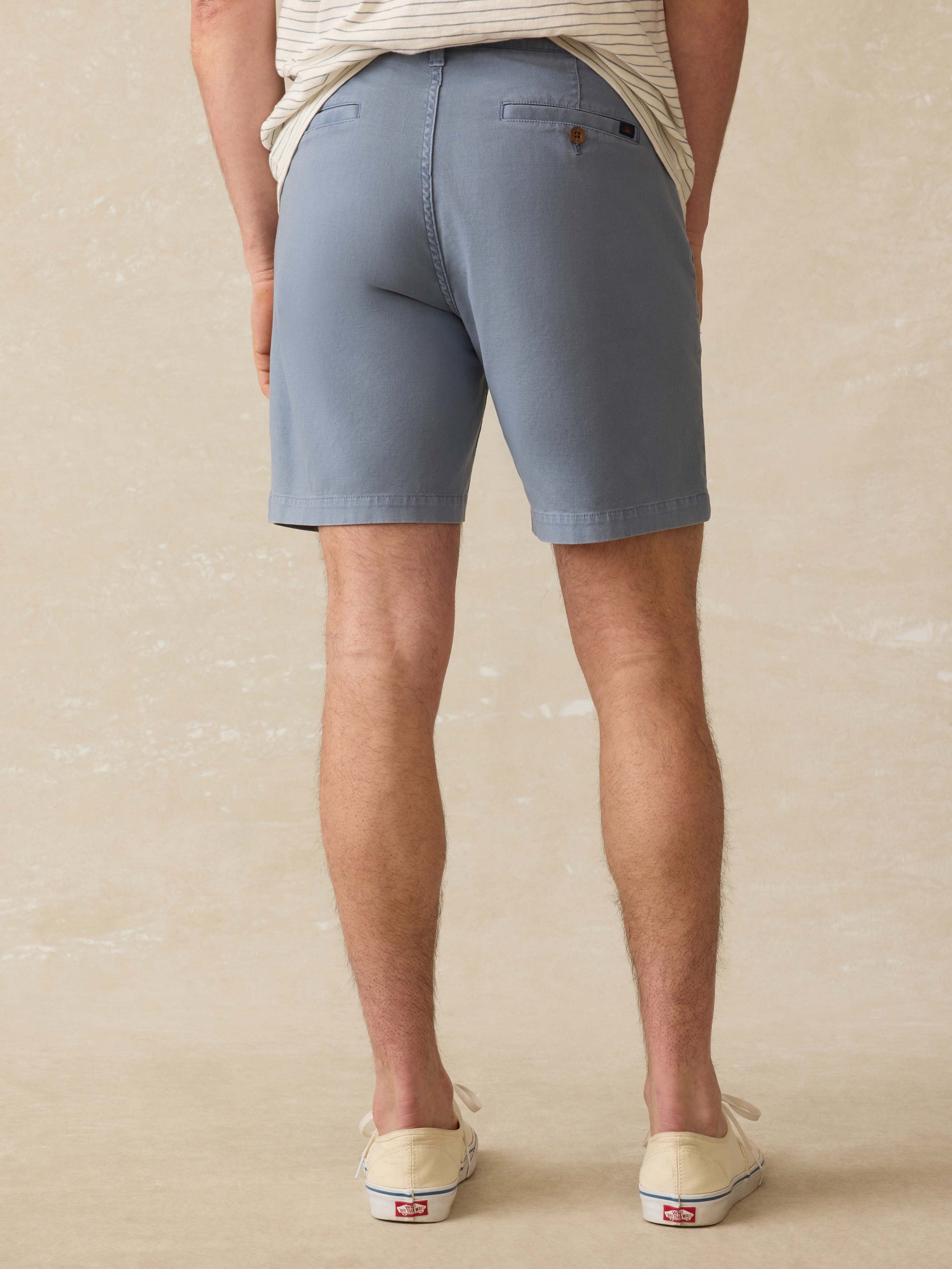 - Detail: Stretch twill chino short with slanted front pocket and welt back pockets, 8" inseam, garment dyed