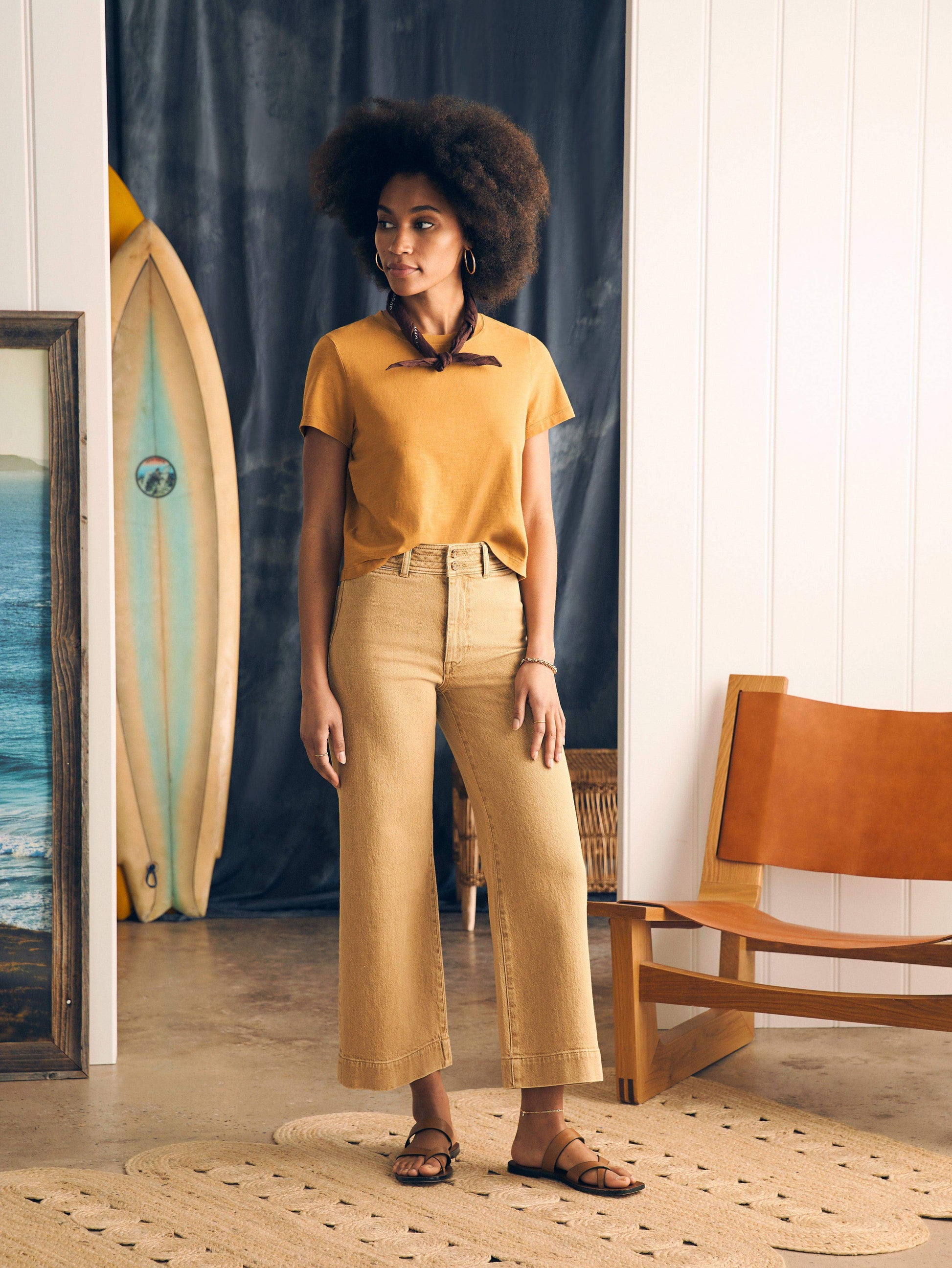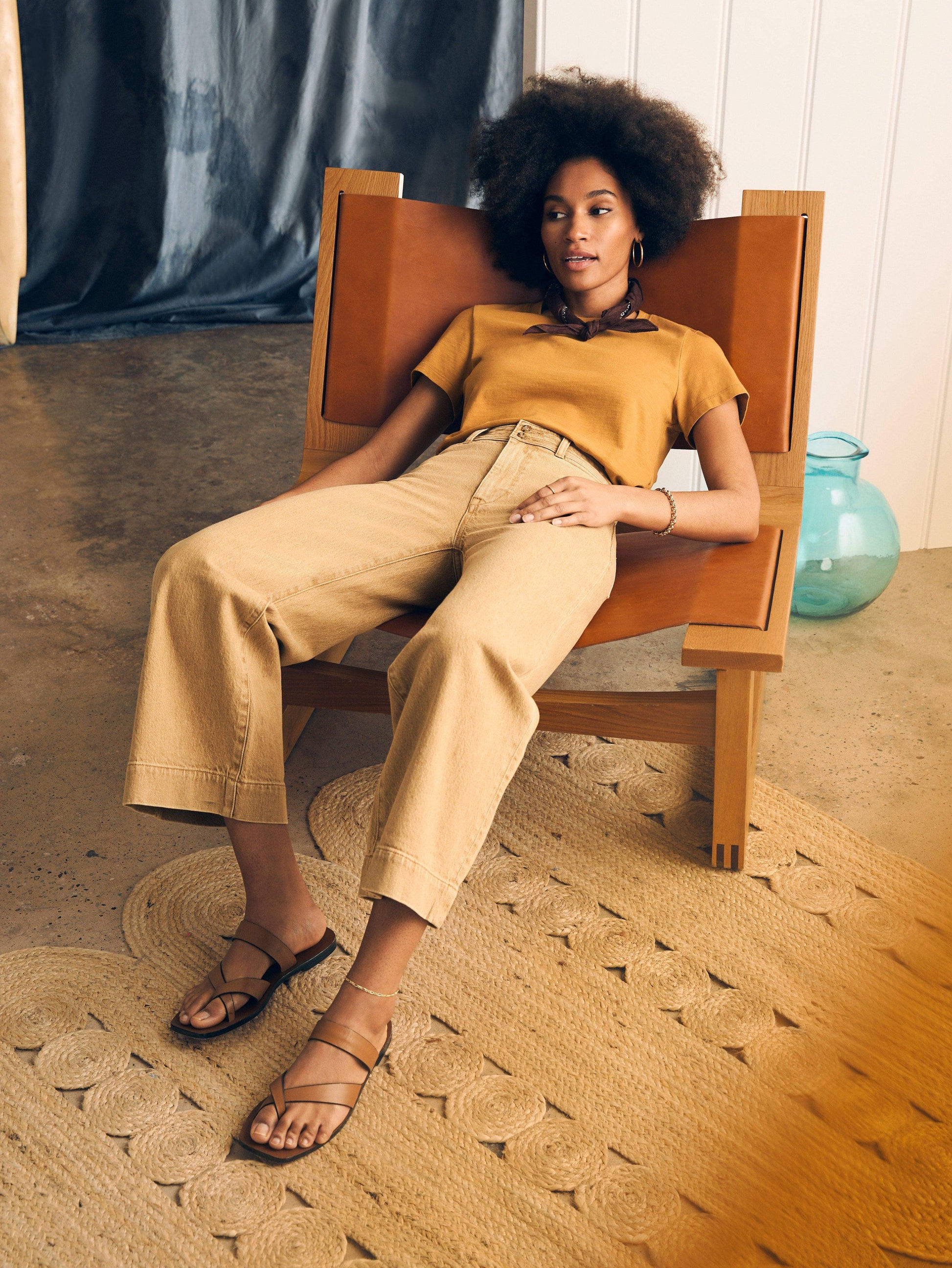 Our new Harbor Crop silhouette features a high rise and wide leg that hits at the ankle for a polished and playful look. The light wash of color – just in time for spring – is created using natural botanical dyes, so that each jean has its own one-of-a-kind character.