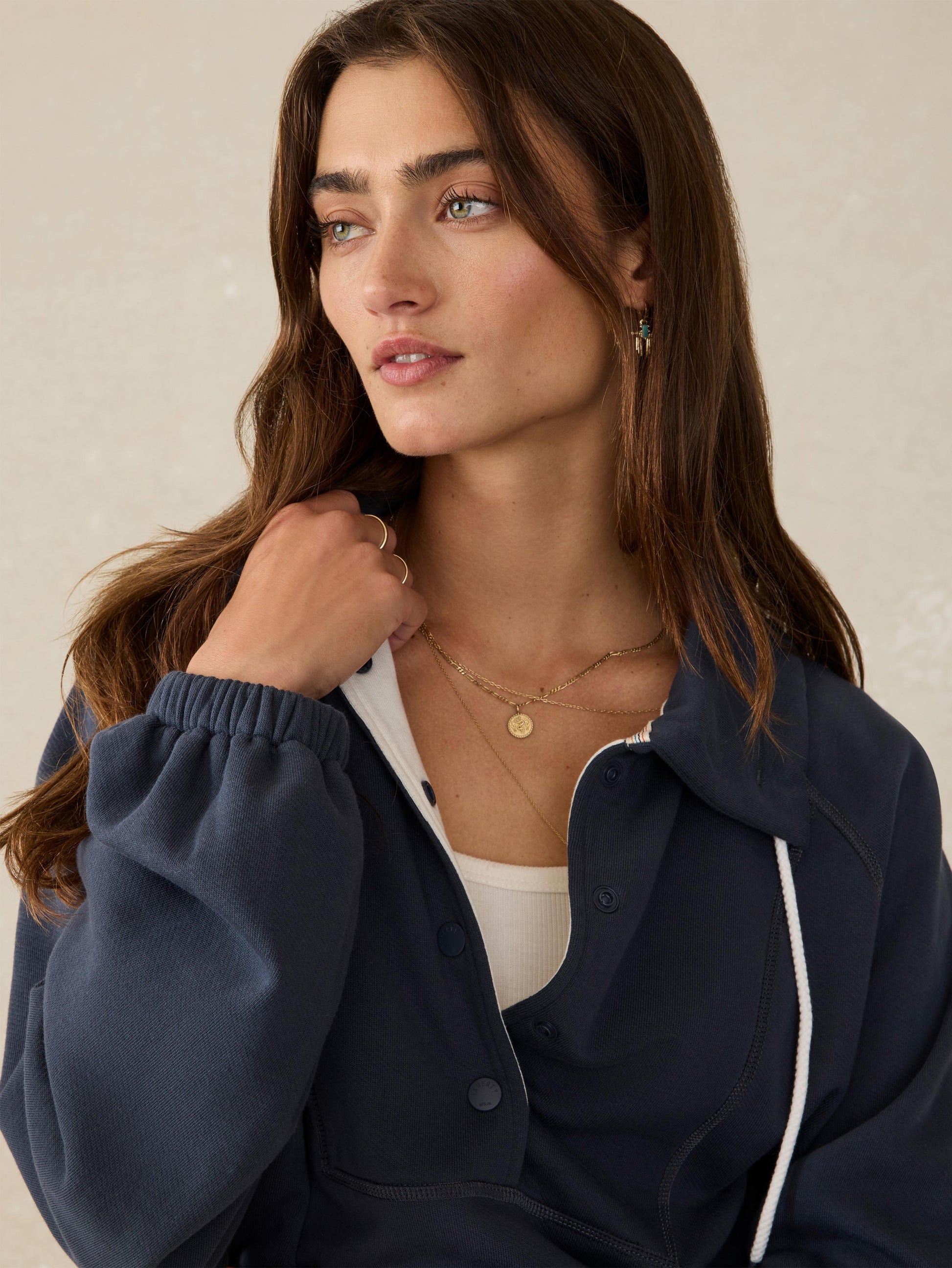 Time to level up from the old college hoodie. This anorak hoodie, crafted from a heavyweight blend of organic Pima cotton and organic cotton, sets a new standard for softness and durability—getting better with every wear and wash. With its easy, laid-back style, it’s perfect for layering on brisk days, casual outings, or just kicking back at home.