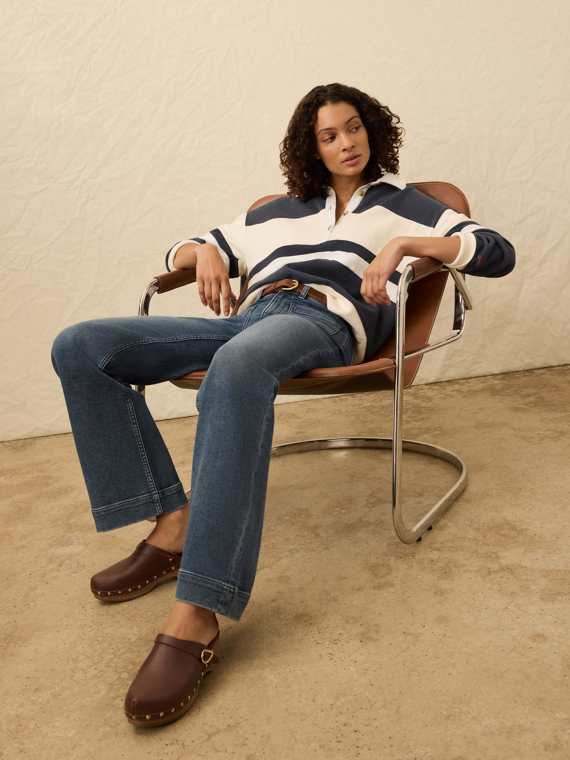 Consider this your rugby, reinvented for cozy season. Crafted from ultra-soft fleece, it has that sporty-preppy vibe while delivering sweatshirt-level comfort. Perfect for layering with denim or leggings, it’s the kind of piece you’ll throw on for everything from weekend errands to fireside lounging.