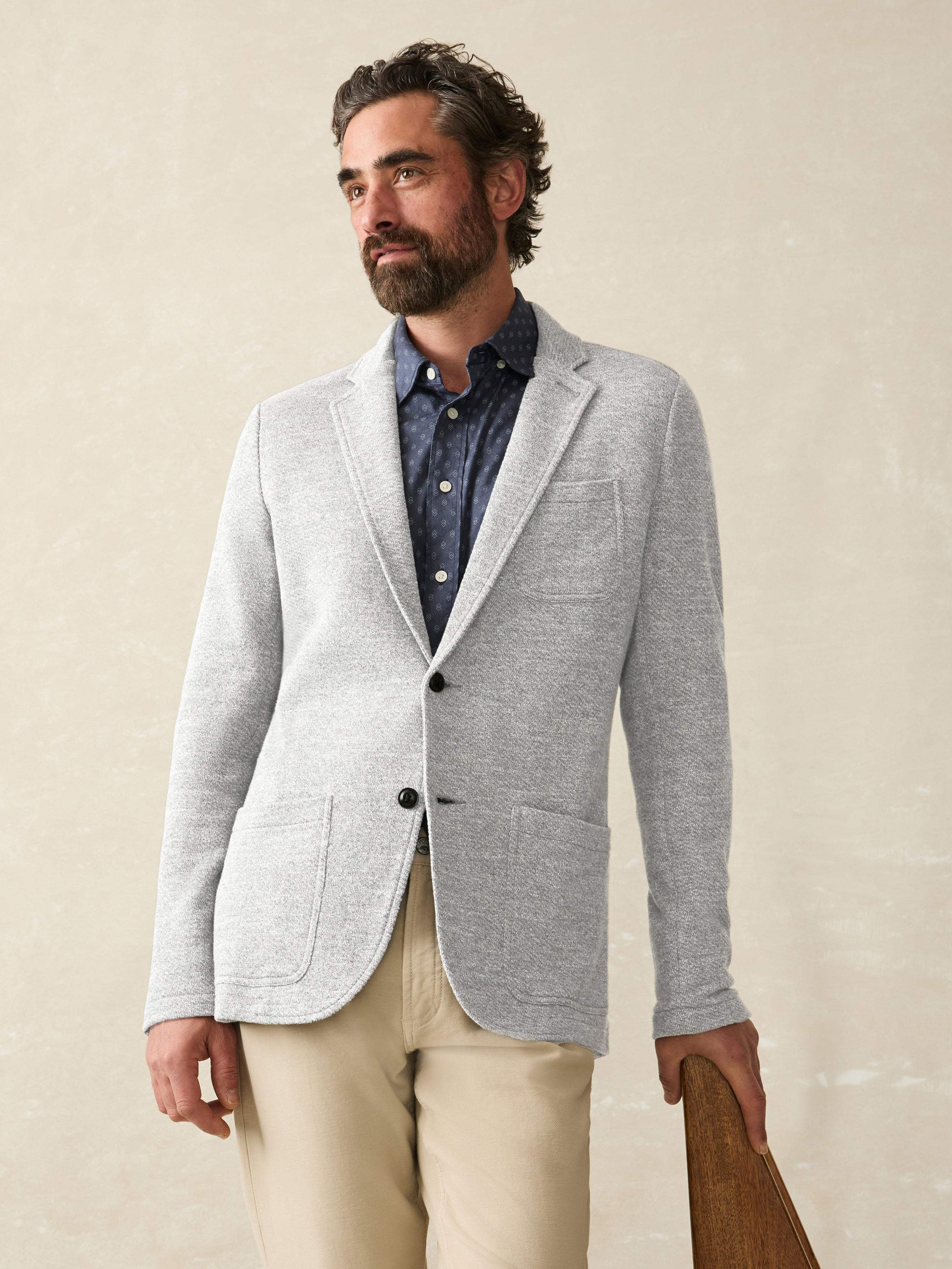 Our definitive sport coat leads with big-time comfort but is finished with top-shelf craftsmanship. The ultimate travel companion, it's easy to care for, making it the perfect piece to throw into your carry-on or wear right off the plane and into the boardroom. Elevated yet unstructured, the signature loopback knit fabric is ridiculously soft, and stretchy, while still retaining its shape. Meet the blazer especially made for guys who don't wear blazers.