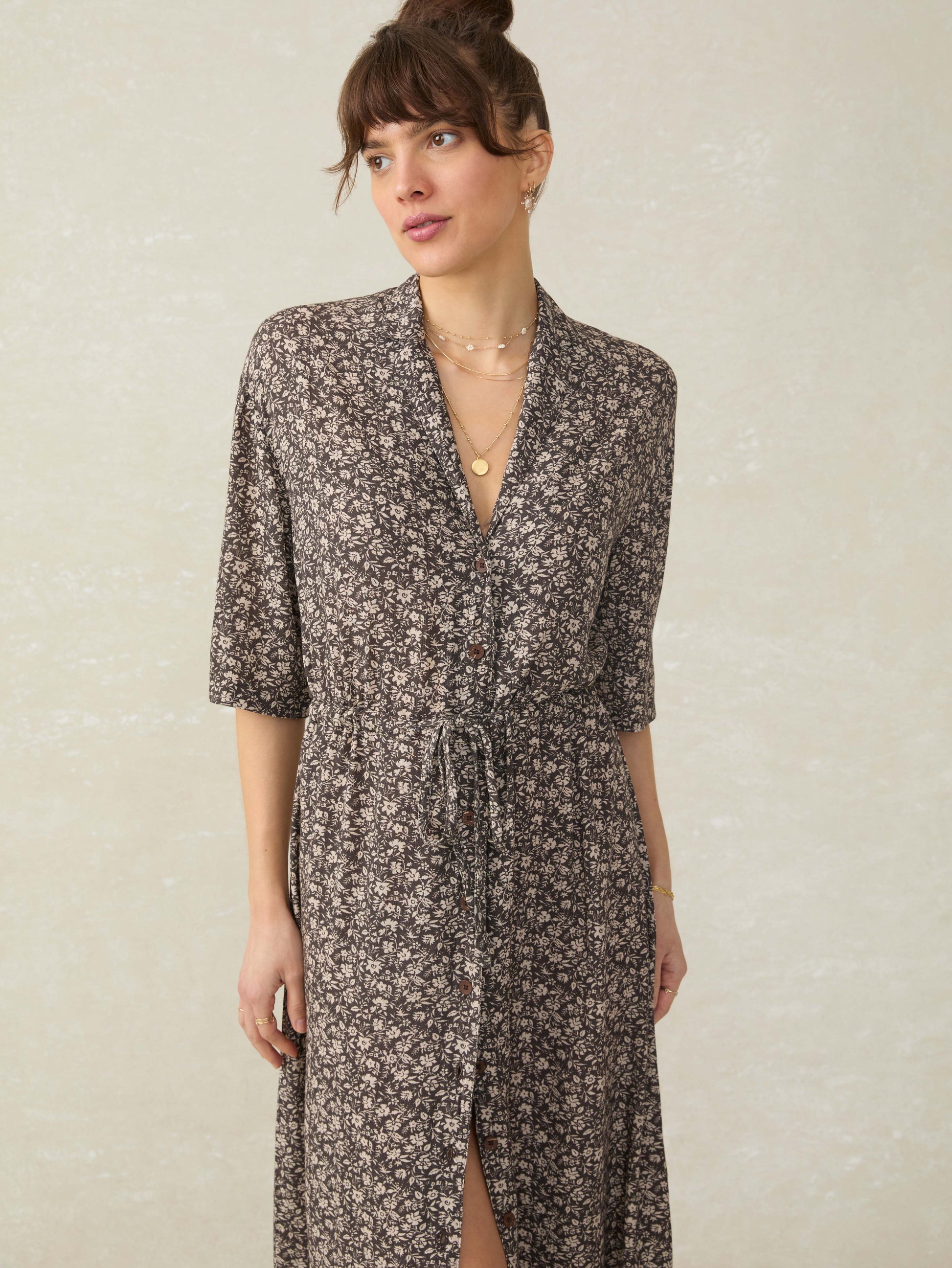 Island Dress - Charcoal Woodstock Floral