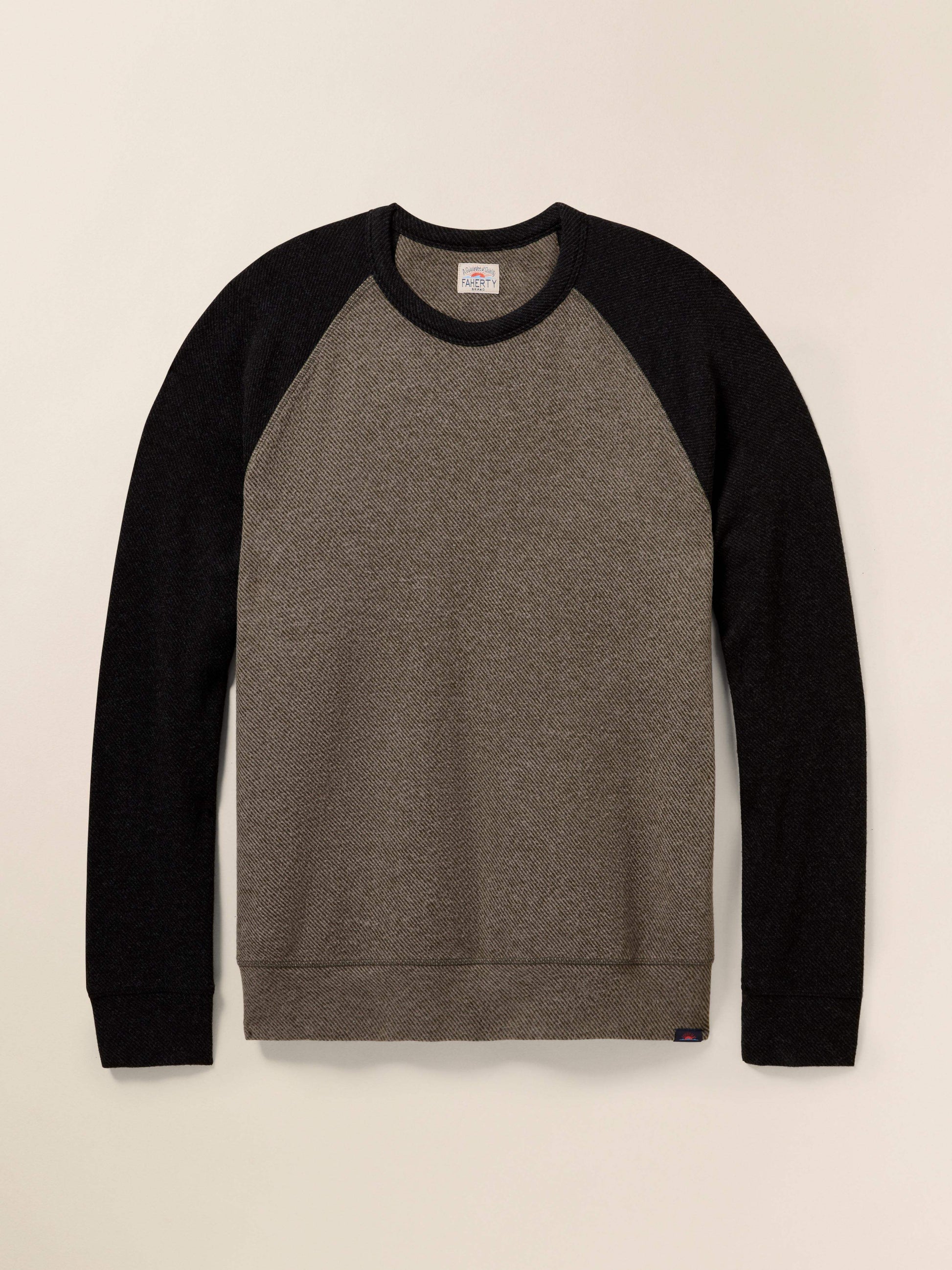 • Detail: Crewneck, pullover style. Contrast raglan sleeves. Banded cuffs and hem. Woven Sun & Waves label at wearer's left hem.