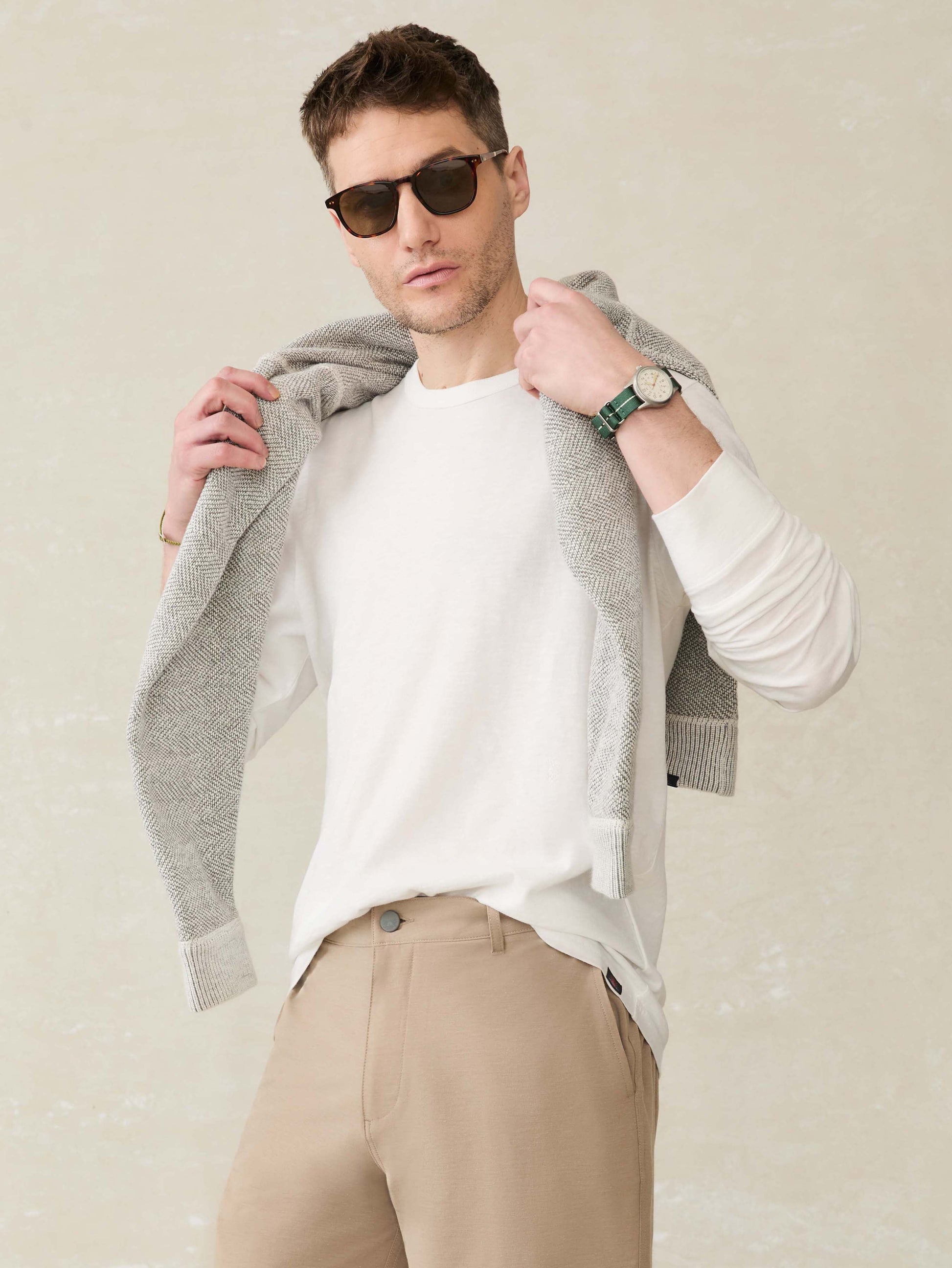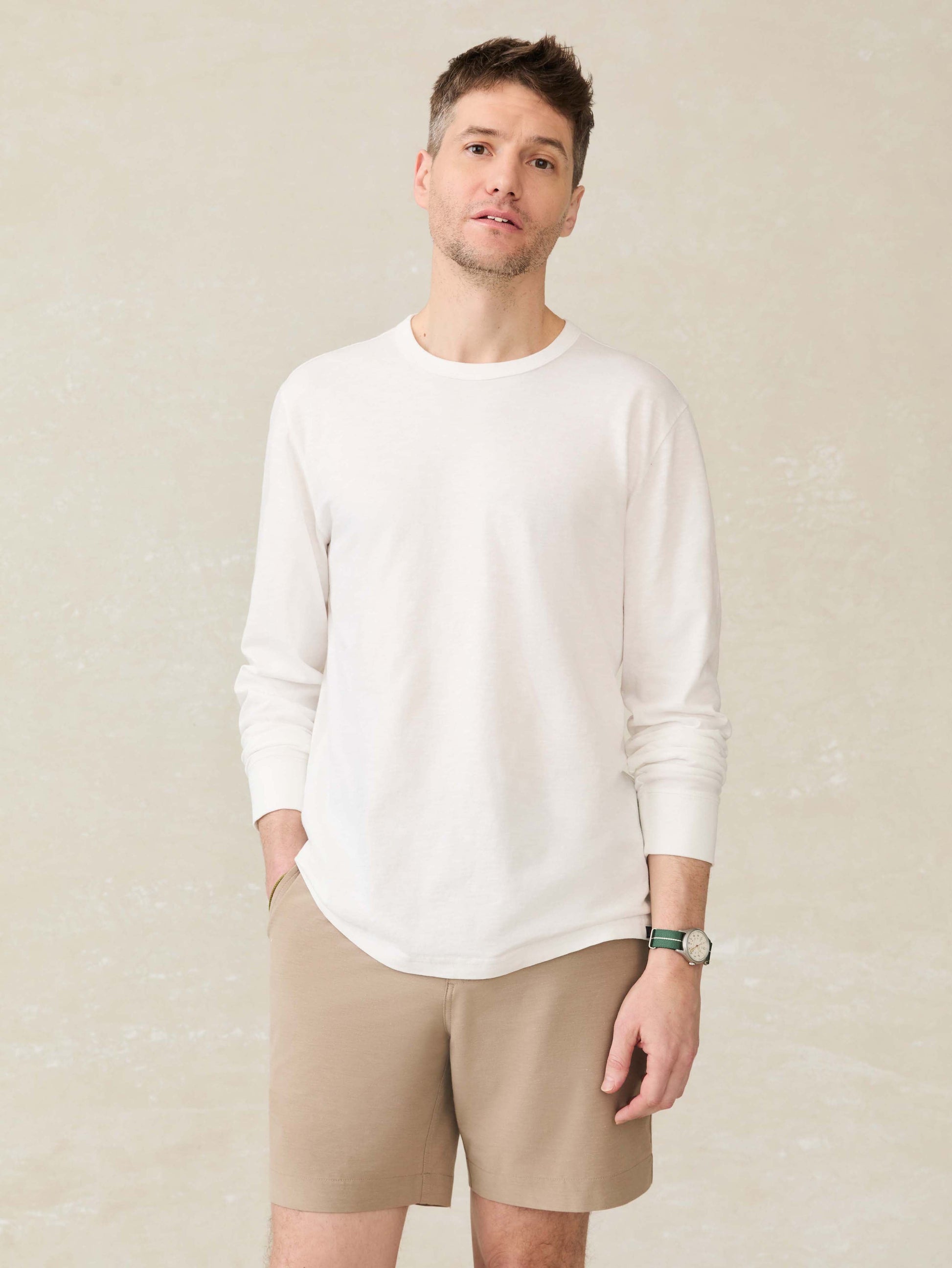 Long-Sleeve Sunwashed Regenerative Cotton Tee - White