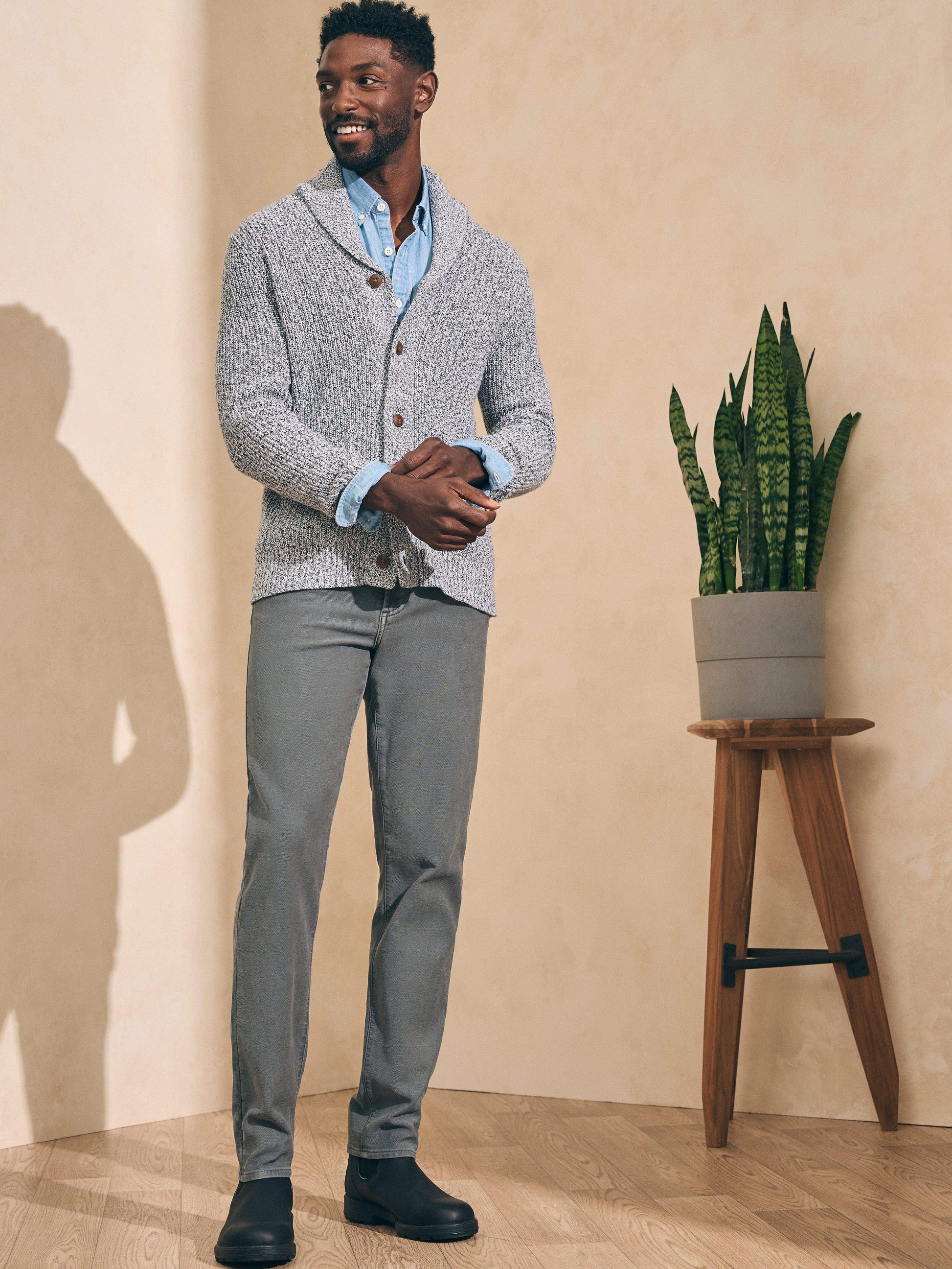 Knit in our softest cotton and cashmere yarn, this cardigan features four interwoven colors for softness and depth. The vintage-inspired silhouette is chunky and cozy, perfect for a bit of extra warmth on chilly days — easy to layer, we love it over a button-up or T-shirt.