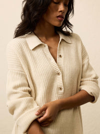 A modern take on the timeless polo, this long sleeve sweater is crafted from a breathable linen-cotton blend with a textural open stitch that feels light yet substantial. The buttoned placket nods to classic style, while the relaxed silhouette gives it a laid-back attitude. Ideal for those in-between days, it transitions seamlessly from sun-filled afternoons to cooler evenings.