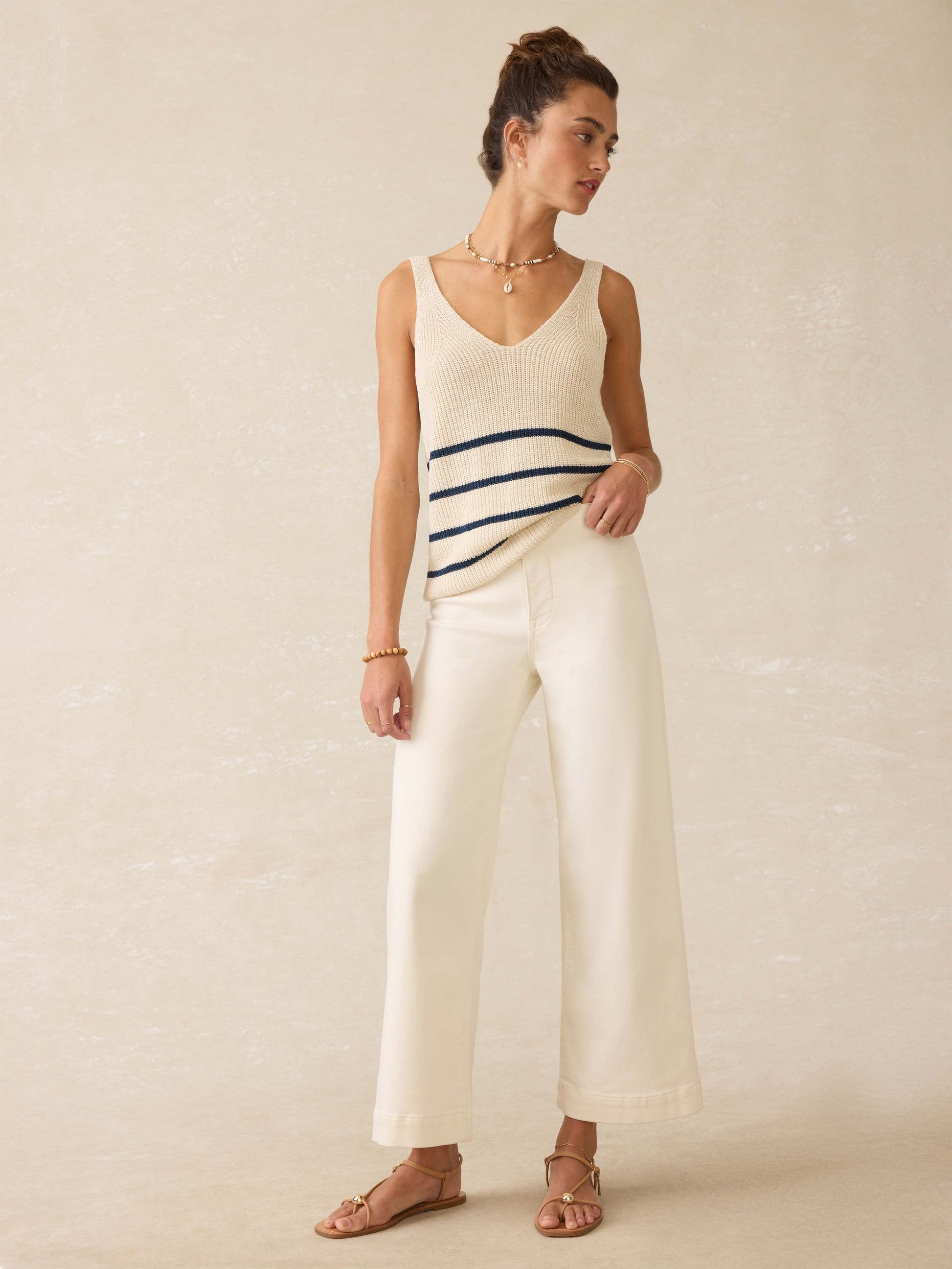 Miramar Linen V-Neck Tank - Sand Cove Stripe