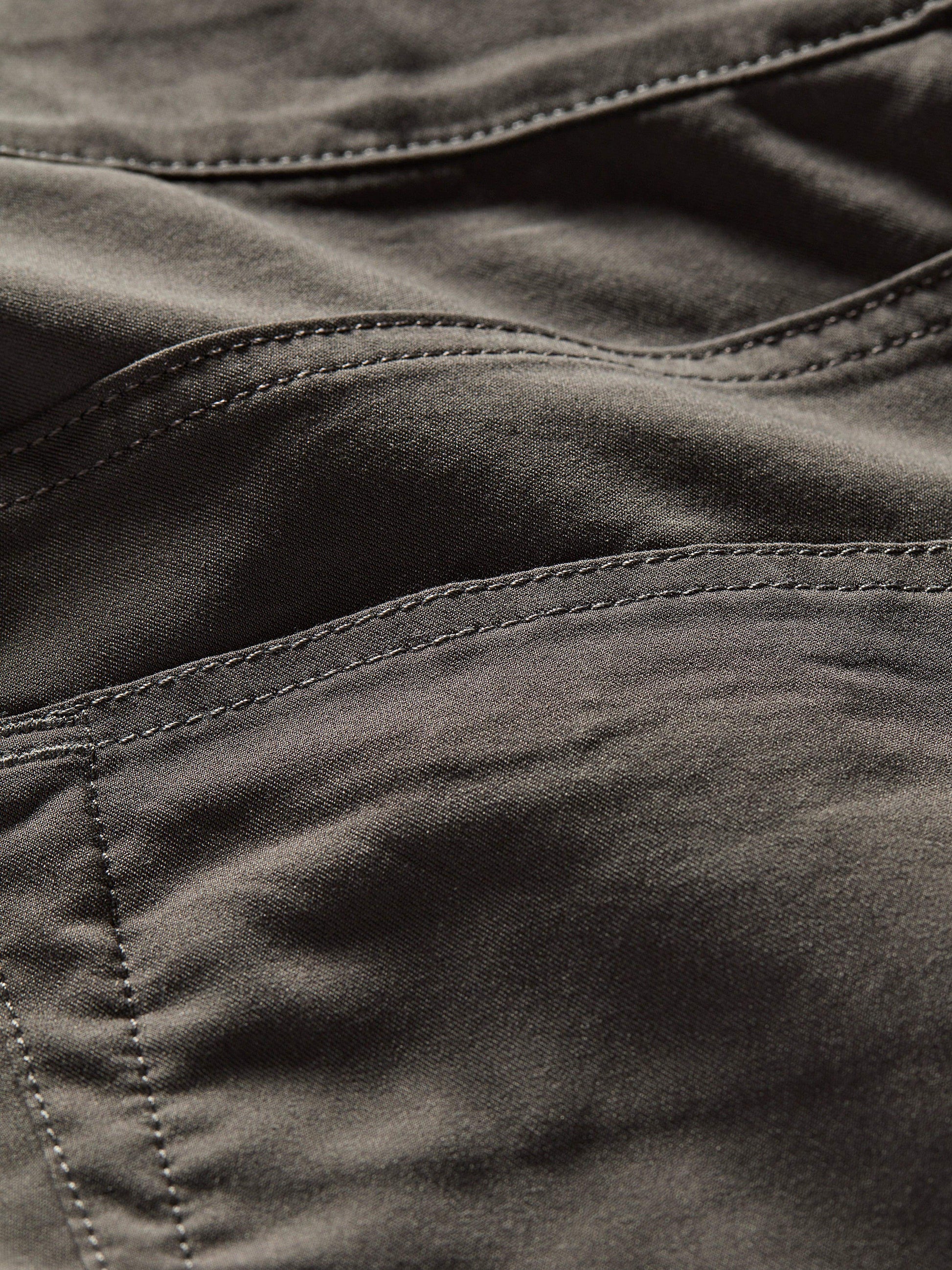 - Material: 63% Organic Cotton, 33% COOLMAX® EcoMade Polyester, 4% Elastane; Elastic Waistband; Antique Silver Centerfront & Wearer's Right Back Pocket Zippers; Sprayed Rubber Shank