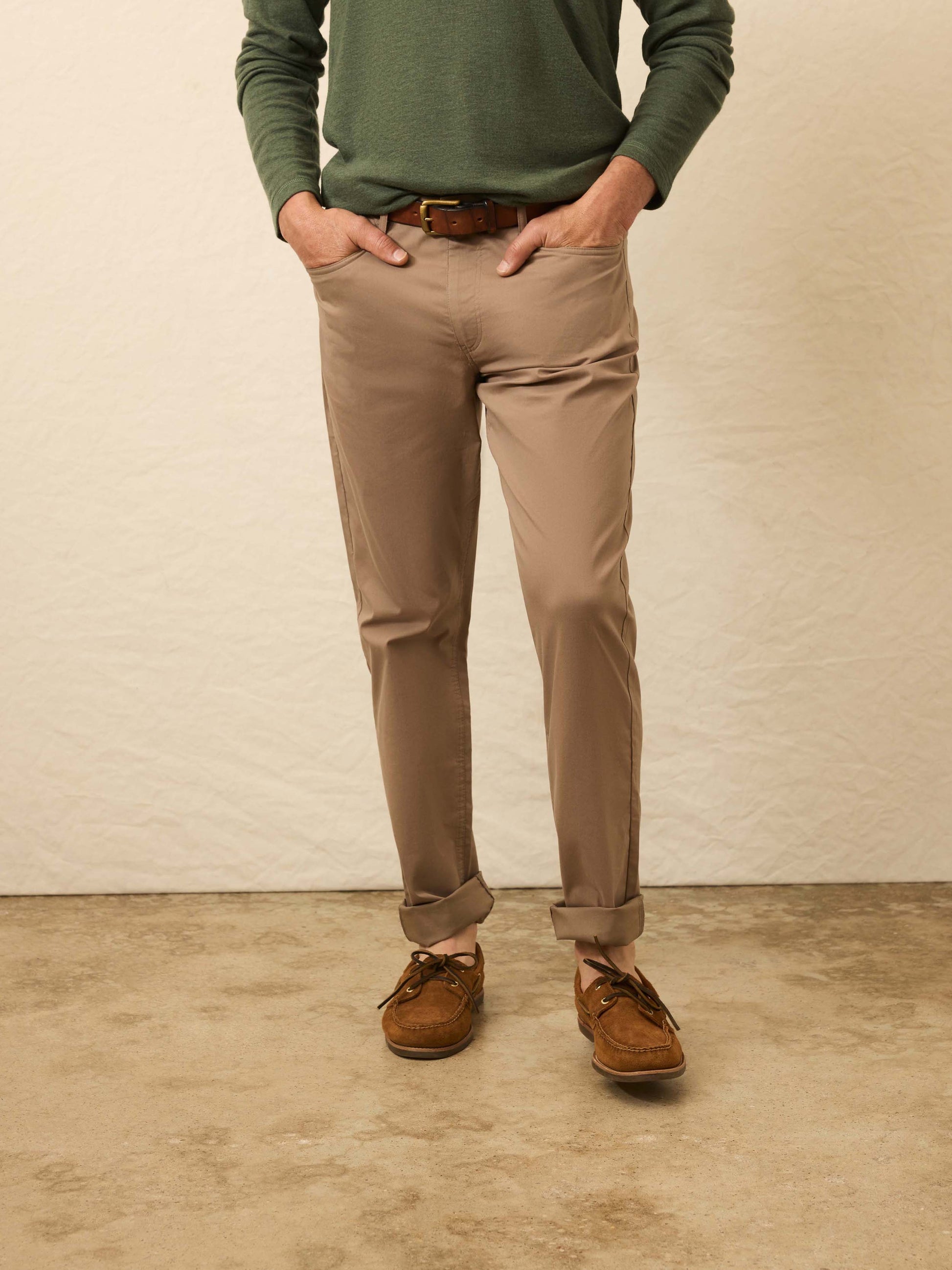 • Detail: Five-pocket style. Zip fly with button closure. Hidden zip pocket at the wearer's right back. Elastic interior waistband for added comfort and a better fit.