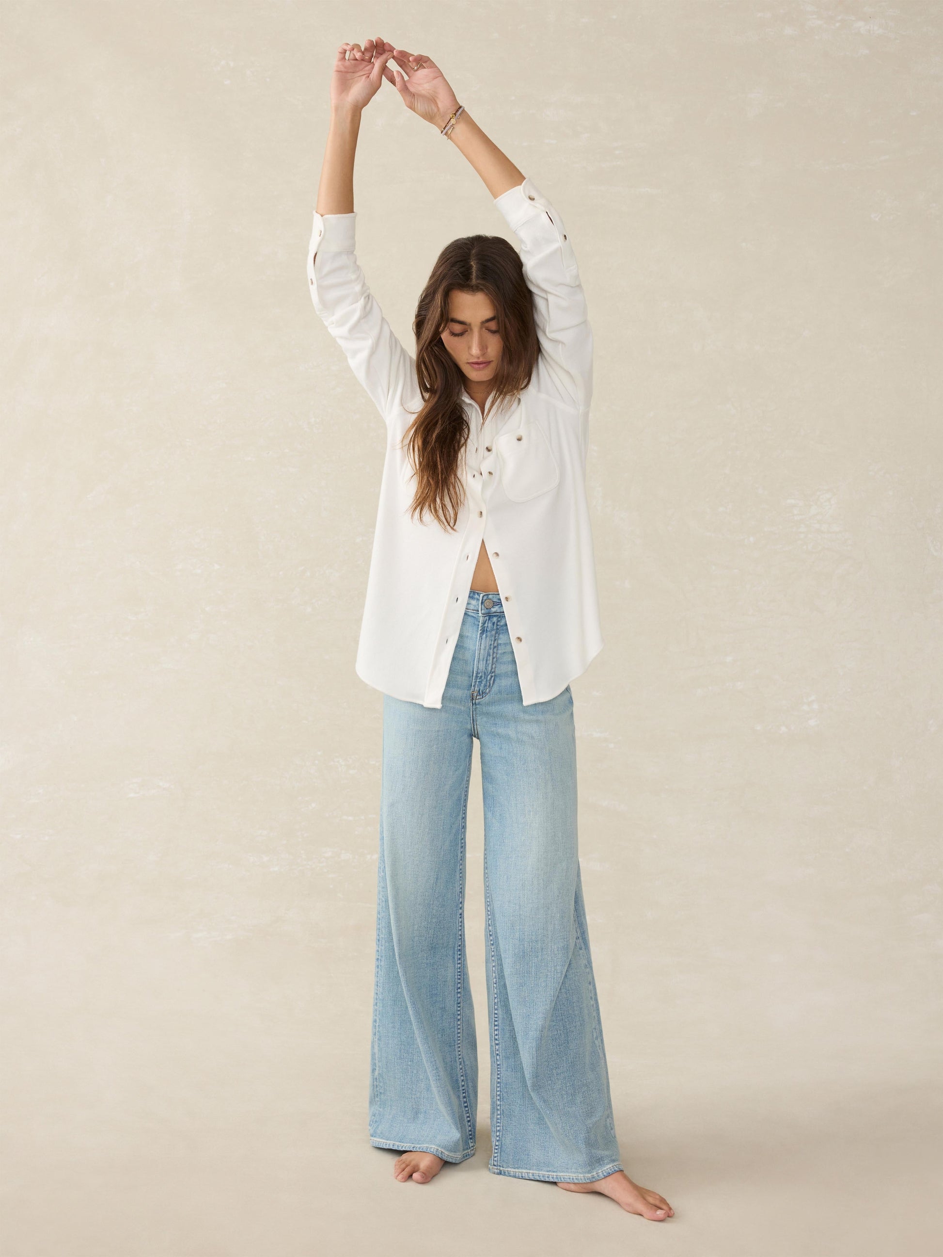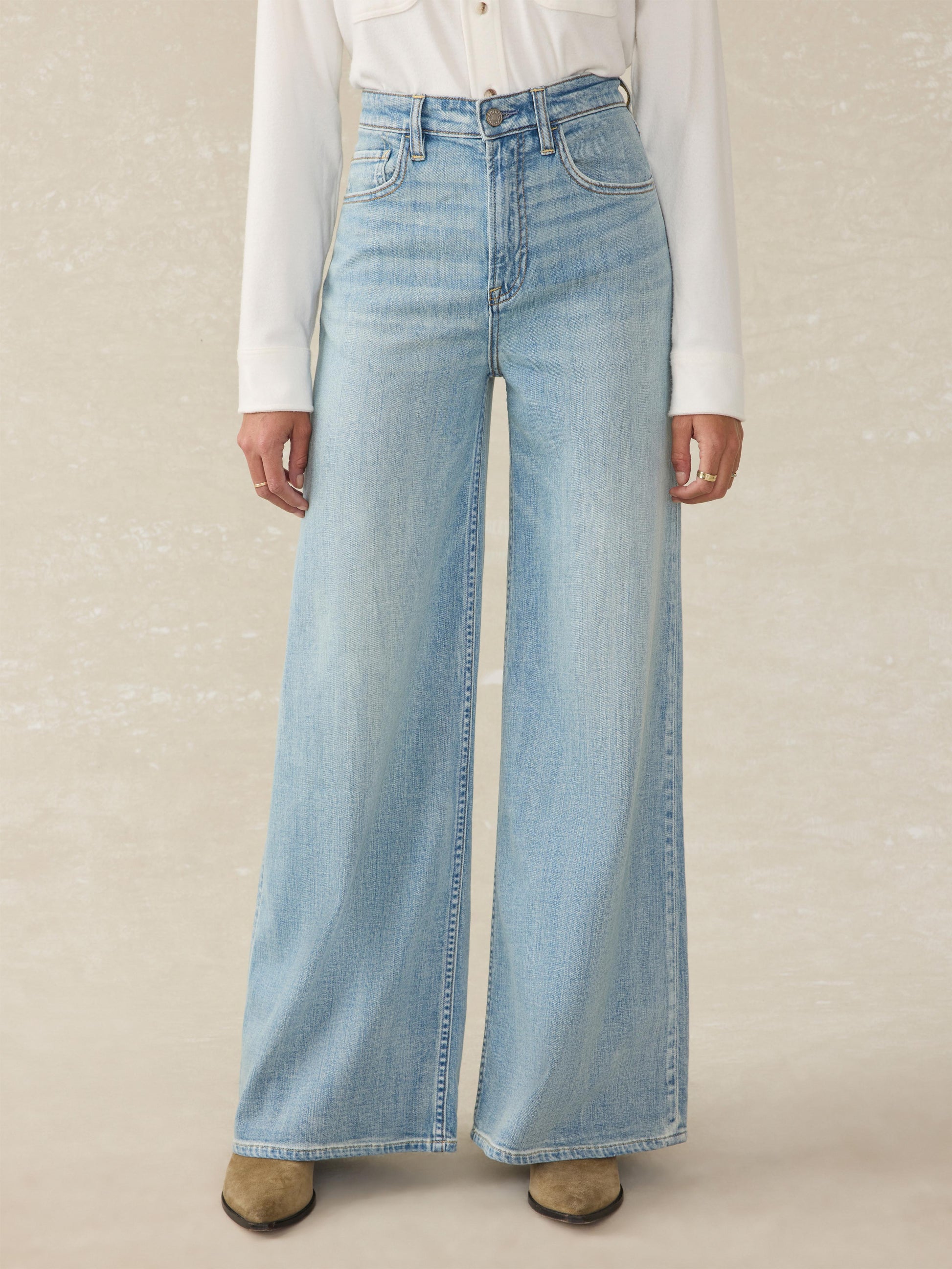 These new feather-light jeans are an ode to the most comfortable, broken-in denim you've ever had. Think super soft, stretchy, and breezy with a laidback drape that moves with you. Constructed with a high waist and wide leg, its easygoing essence was made for beachside strolls and weekend getaways in mind.