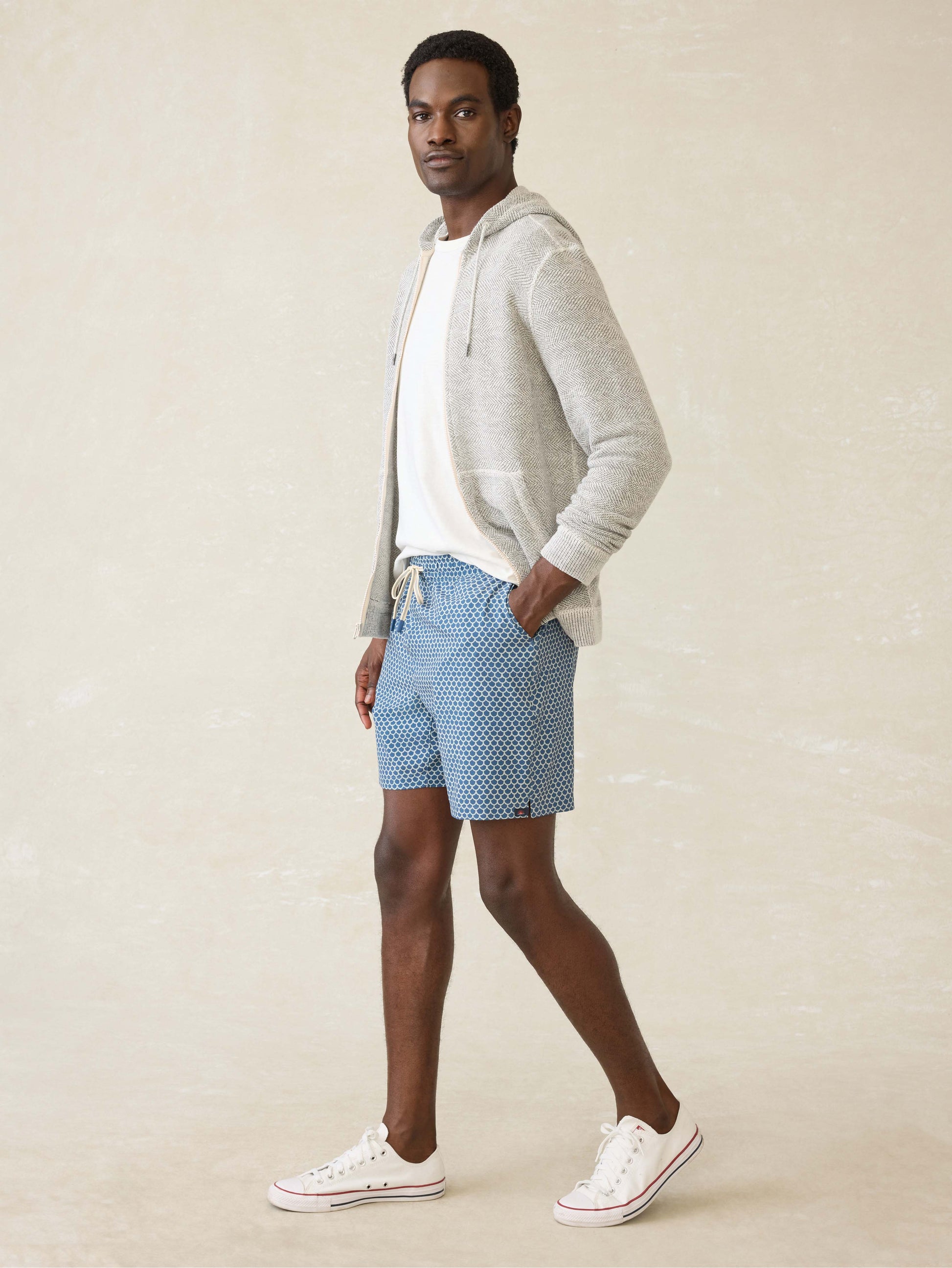 Introducing our most technical swim trunk yet for those gym-to beach days (and maybe even some lounging in between). Packed with utility, it's got a breathable, compression liner for support during your most active moments and zippered accessory pockets to keep valuables close. The lightweight and quick-drying fabric has the perfect amount of stretch and offers UPF50+ so you can stay out and get after it. If you're looking for a true activewear short with an iconic Faherty beach vibe, this is it.