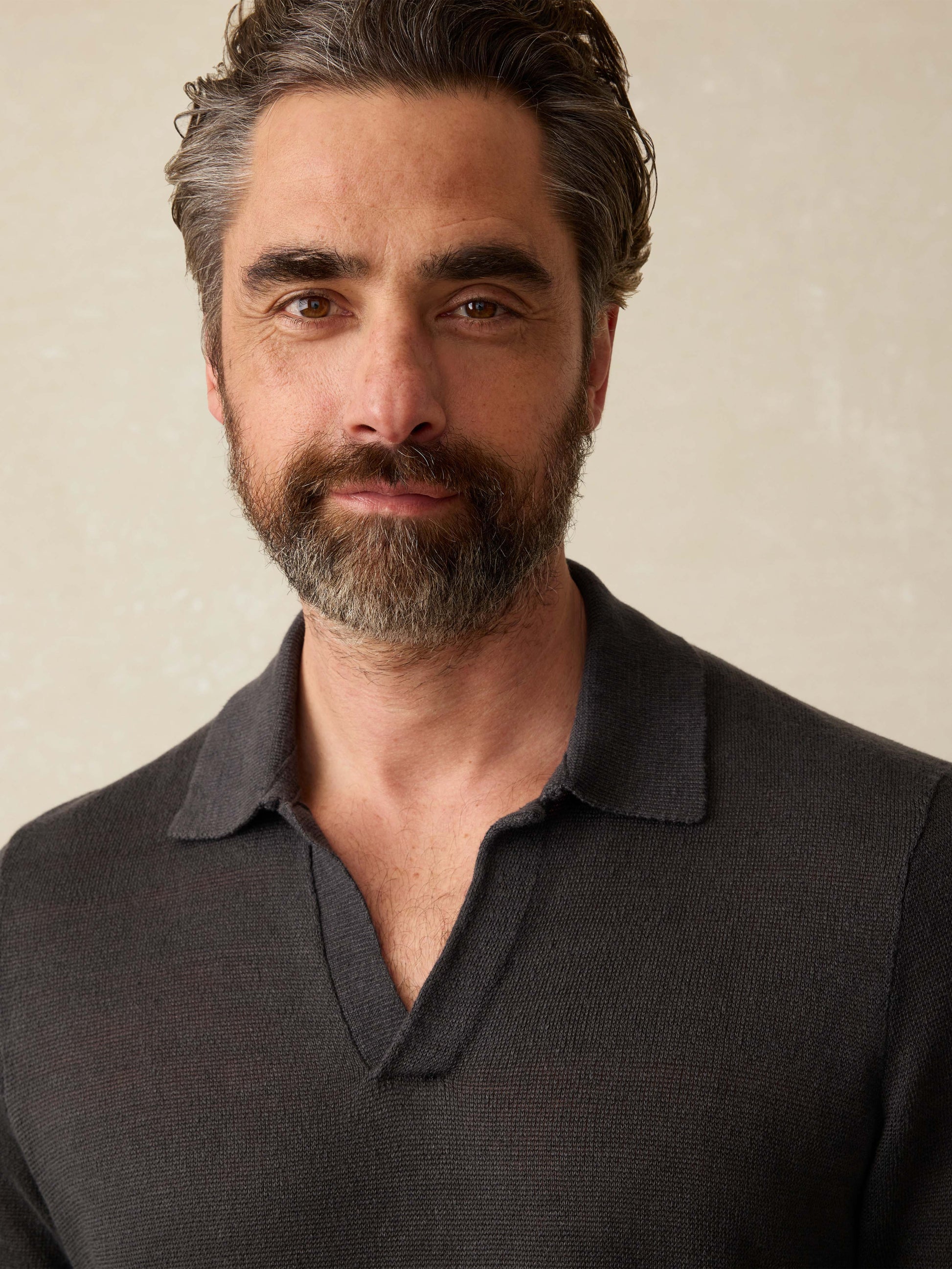 Short-Sleeve Linen Sweater Polo - Mountain Black