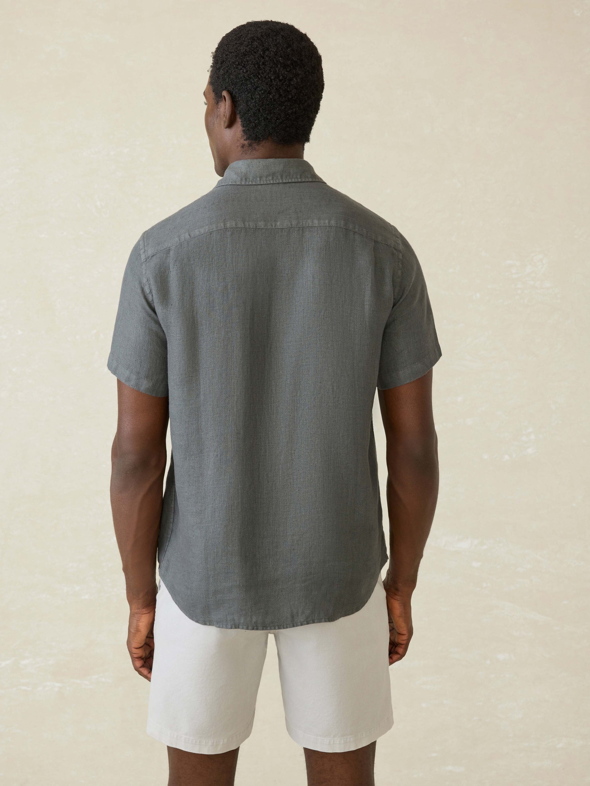 Short-Sleeve Palma Linen Shirt - Washed Black Basketweave