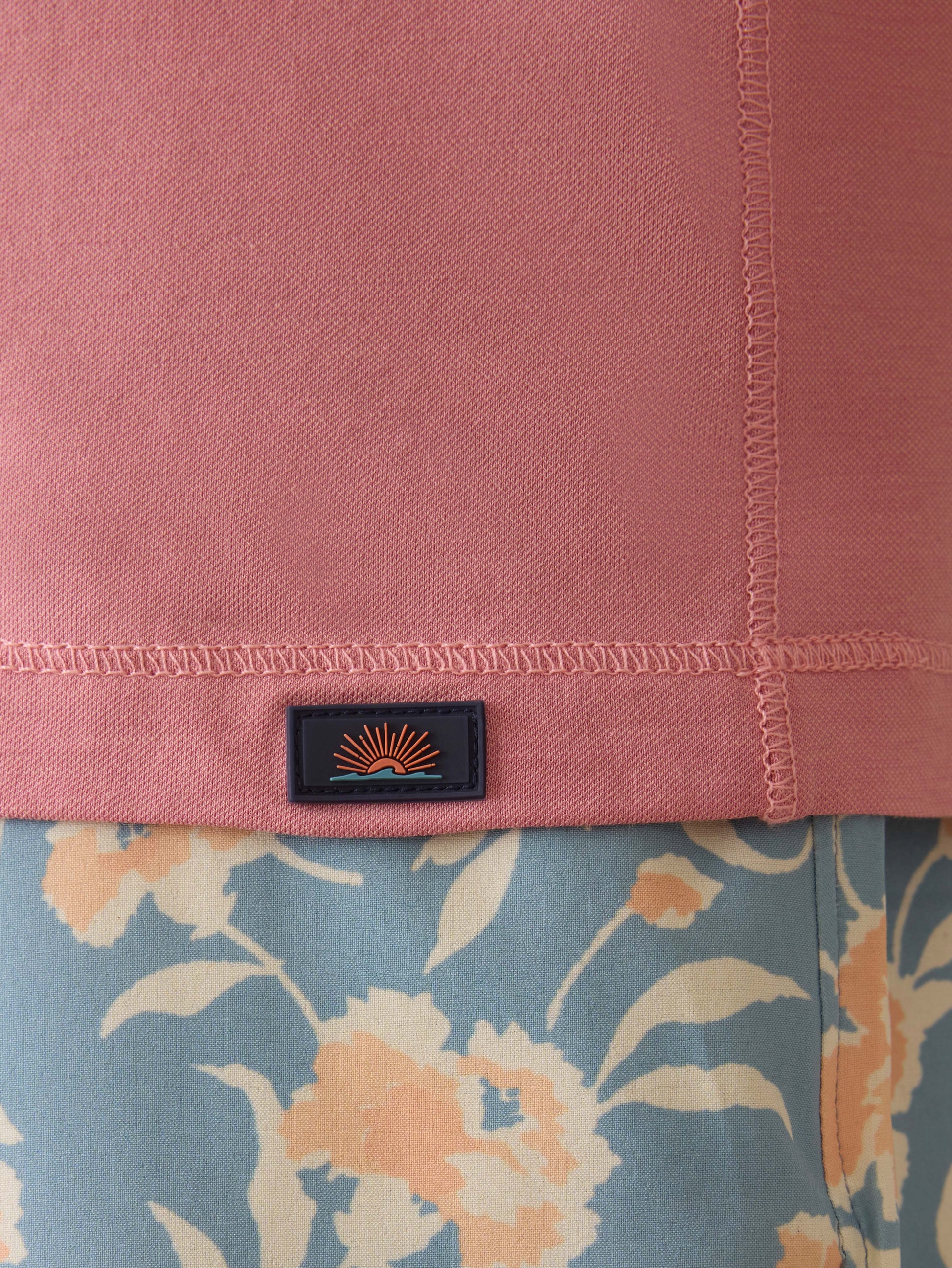 • Detail: Self fabric bound collar. Printed main label at back neck. Silicone Sun and Waves label at wearer's left front hem. Soft microfilament thread for comfort next to skin.