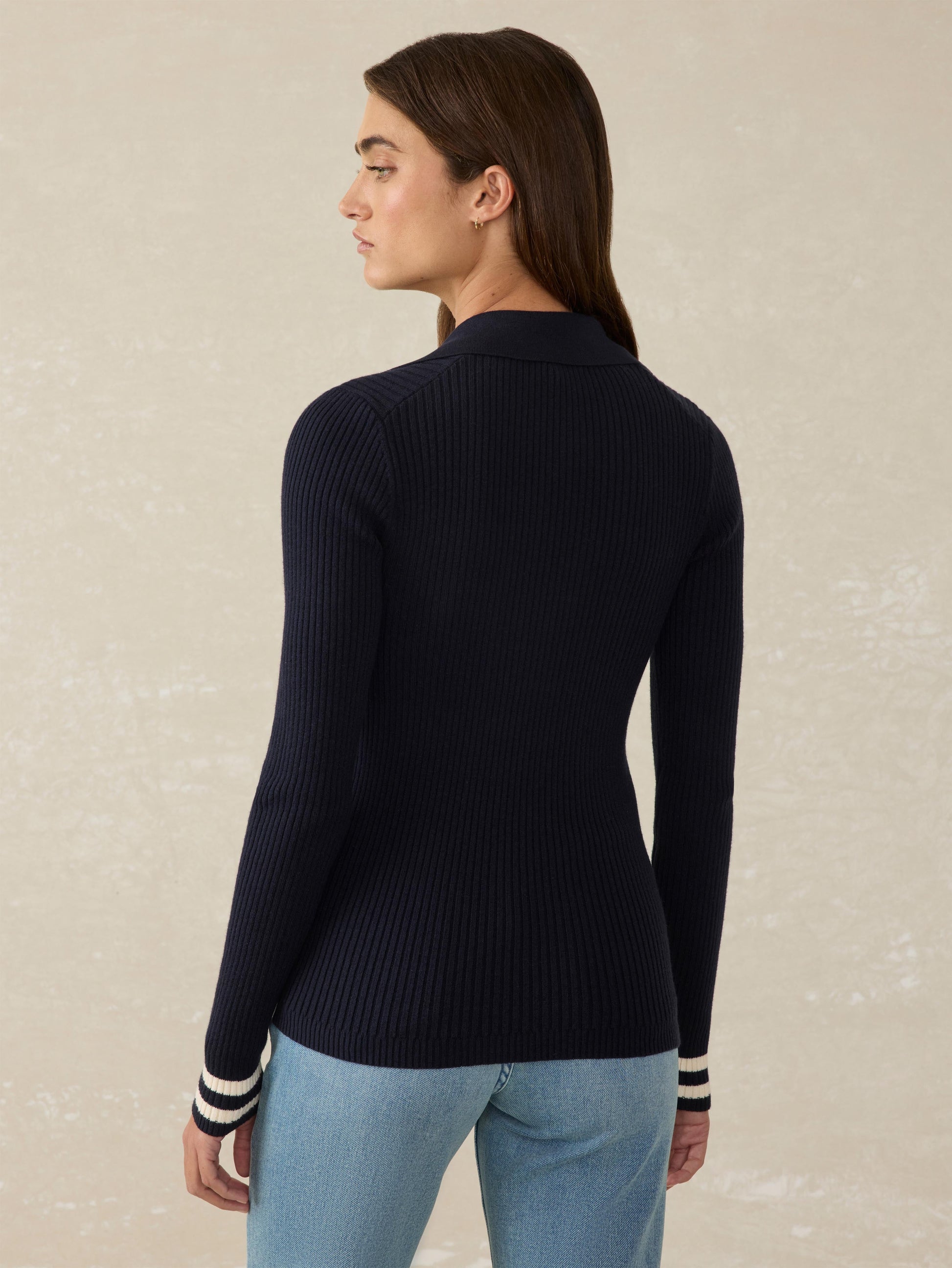 Stretch Cotton Cashmere Rib Polo - Navy Retro Stripe