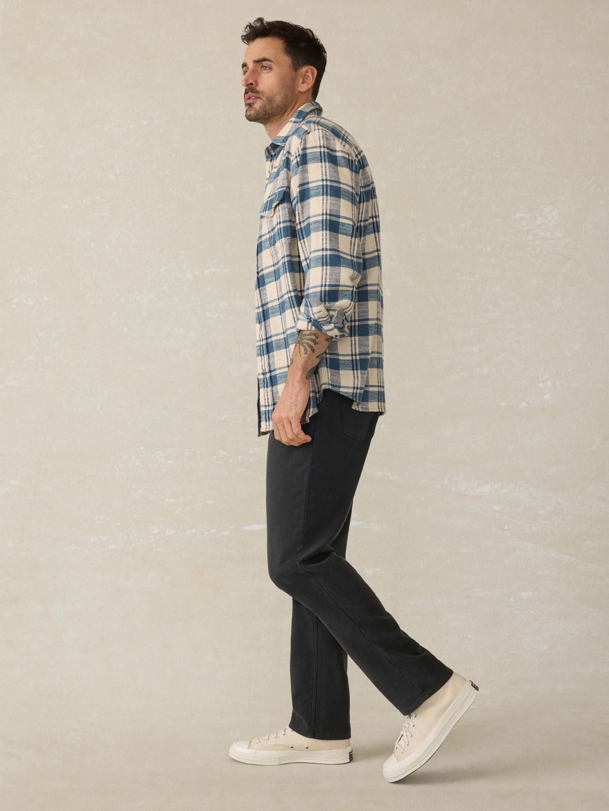 Our Workhorse. Our Go-To. The first pant we're pulling off the rack on any given day of the week. The Stretch Terry 5-Pocket Pant is rugged and structured, best known for its authentic denim look with that signature Faherty HOLY $&*! comfort factor. Even better? The fabric is yarn-dyed—meaning the color is woven in from the start so they keep their depth, softness, and lived-in look wash after wash.