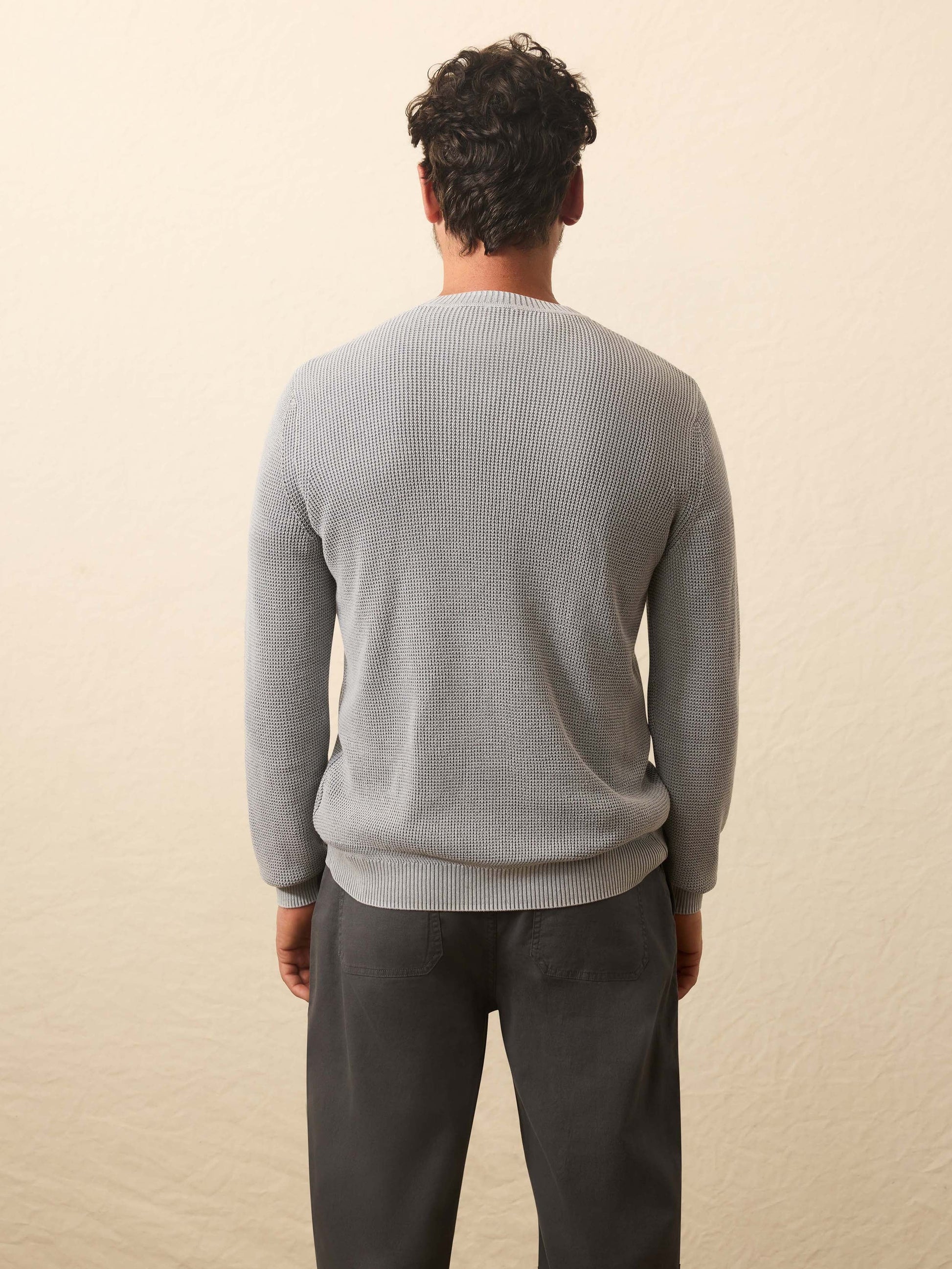 Designed as an easy to wear, transitional sweater., this will be your go-to year-round crew. Our cotton yarn is super soft but not overly warm and knit in an airy, waffle stitch giving the sweater dimension and texture. It's then garment-dyed and washed for a lived in, vintage look and feel that's casually cool for any occasion.