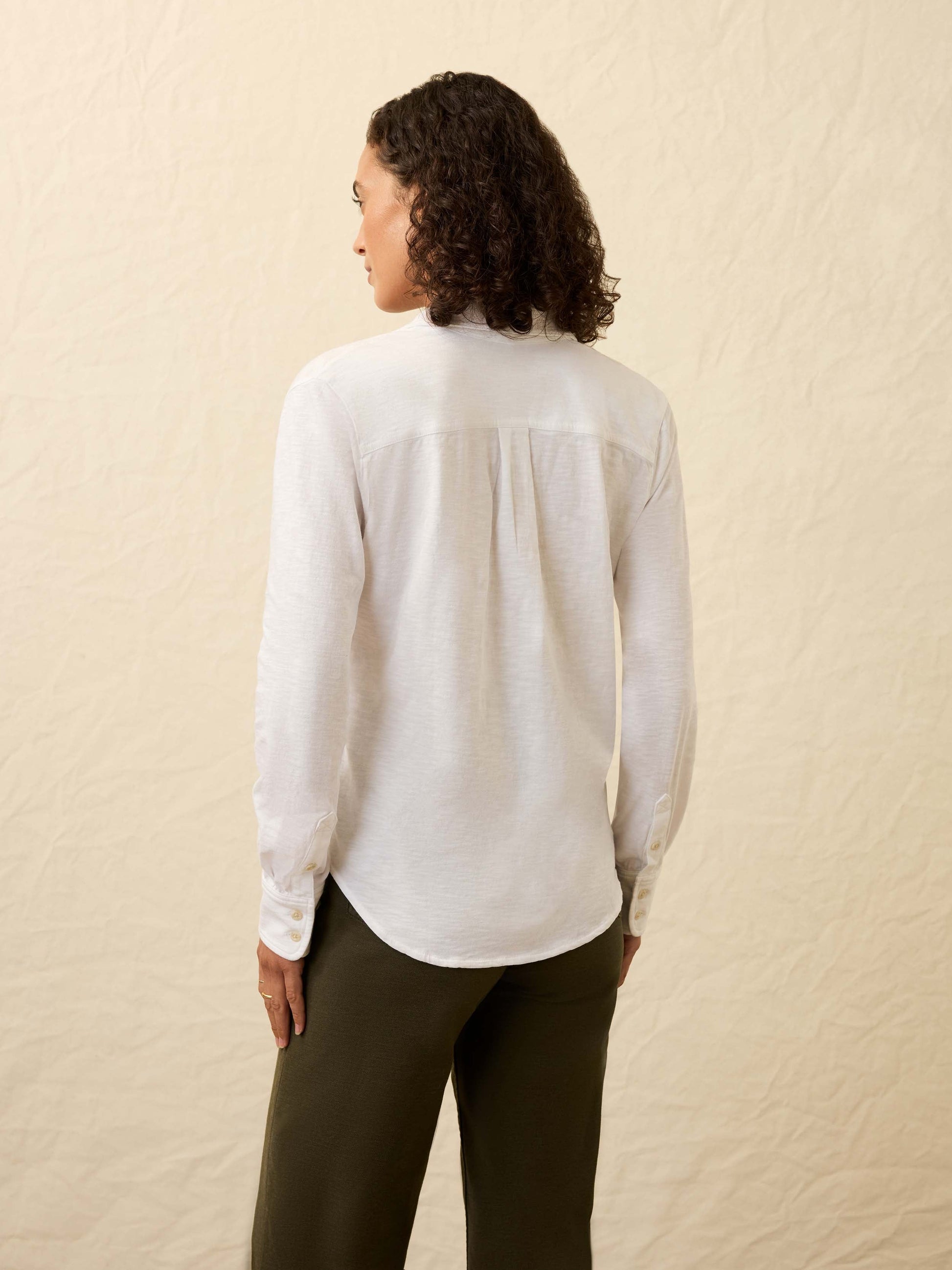 Borrowed from the boys, this icon is truly one of a kind — it looks like a button-up, but wears like a soft tee. Unique to Faherty, it has been designed and tailored for refinement, while still feeling like a mid-weight organic slub cotton T-shirt; it’s season-spanning and pairs with everything.