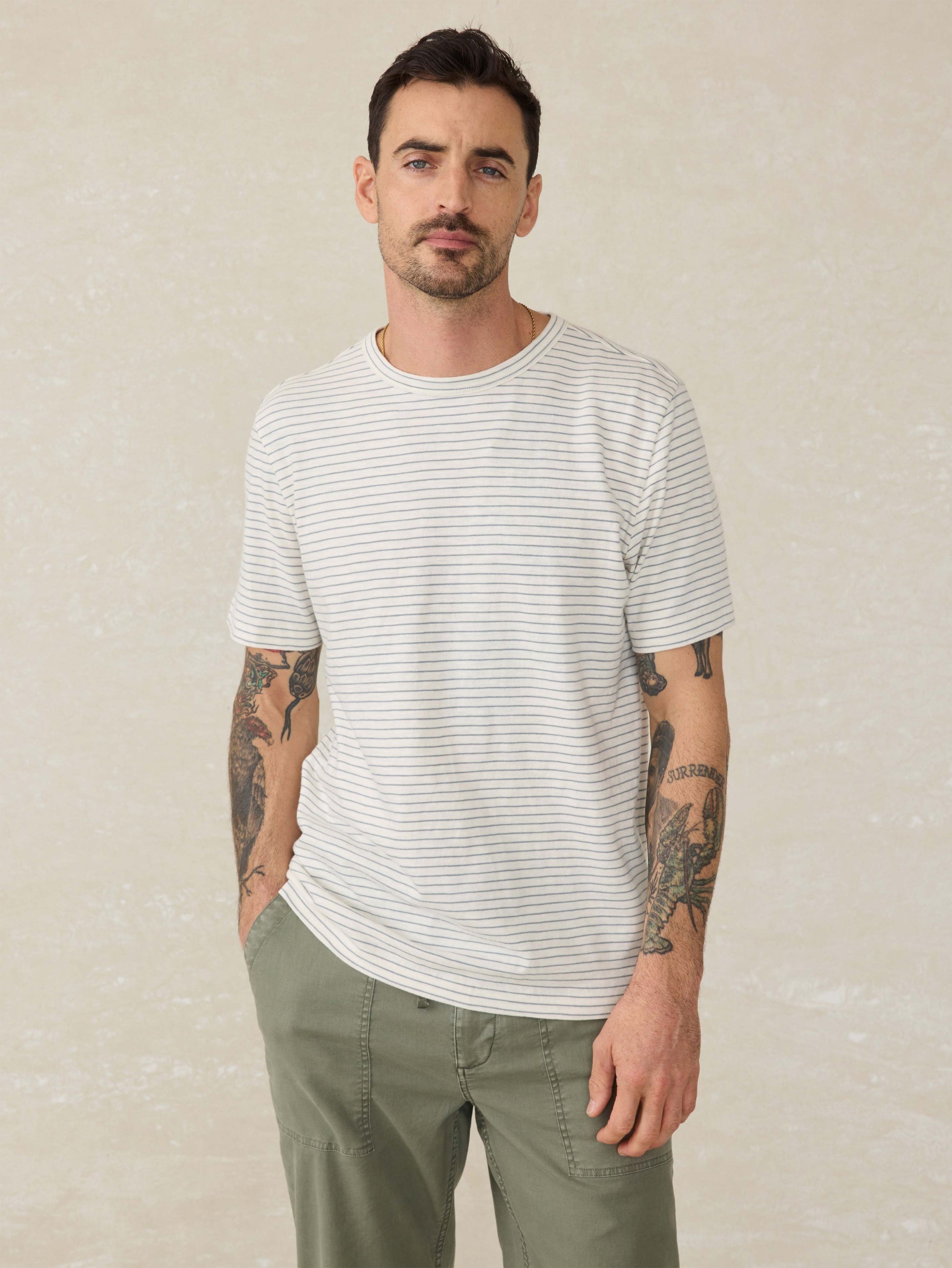 The only tee shirt you need. Our Sunwashed Tees are crafted in 100% Regenerative Organic Cotton and finished with a lower impact Ozone Wash, for a perfectly lived-in look and feel. Cut with a relaxed silhouette, this is the timeless wear-with-everything tee. Some call these basics – we definitely don't.