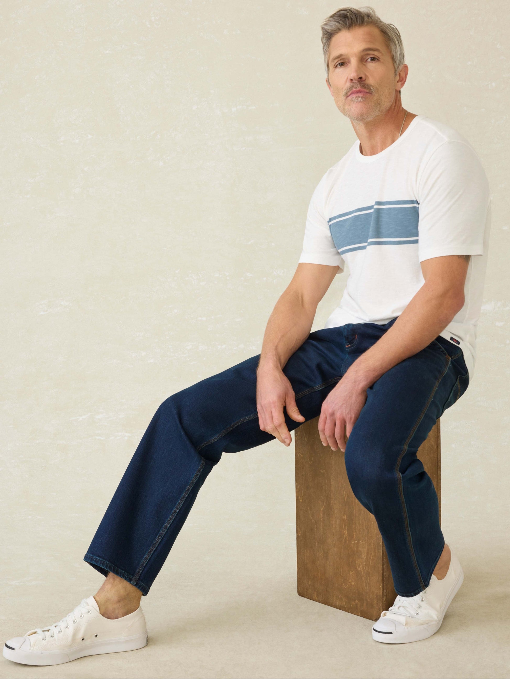 The only tee shirt you need. Our Sunwashed Tees are crafted in 100% Regenerative Organic Cotton and finished with a lower impact Ozone Wash, for a perfectly lived-in look and feel. Cut with a relaxed silhouette, this is the timeless wear-with-everything tee. Some call these basics – we definitely don't.
