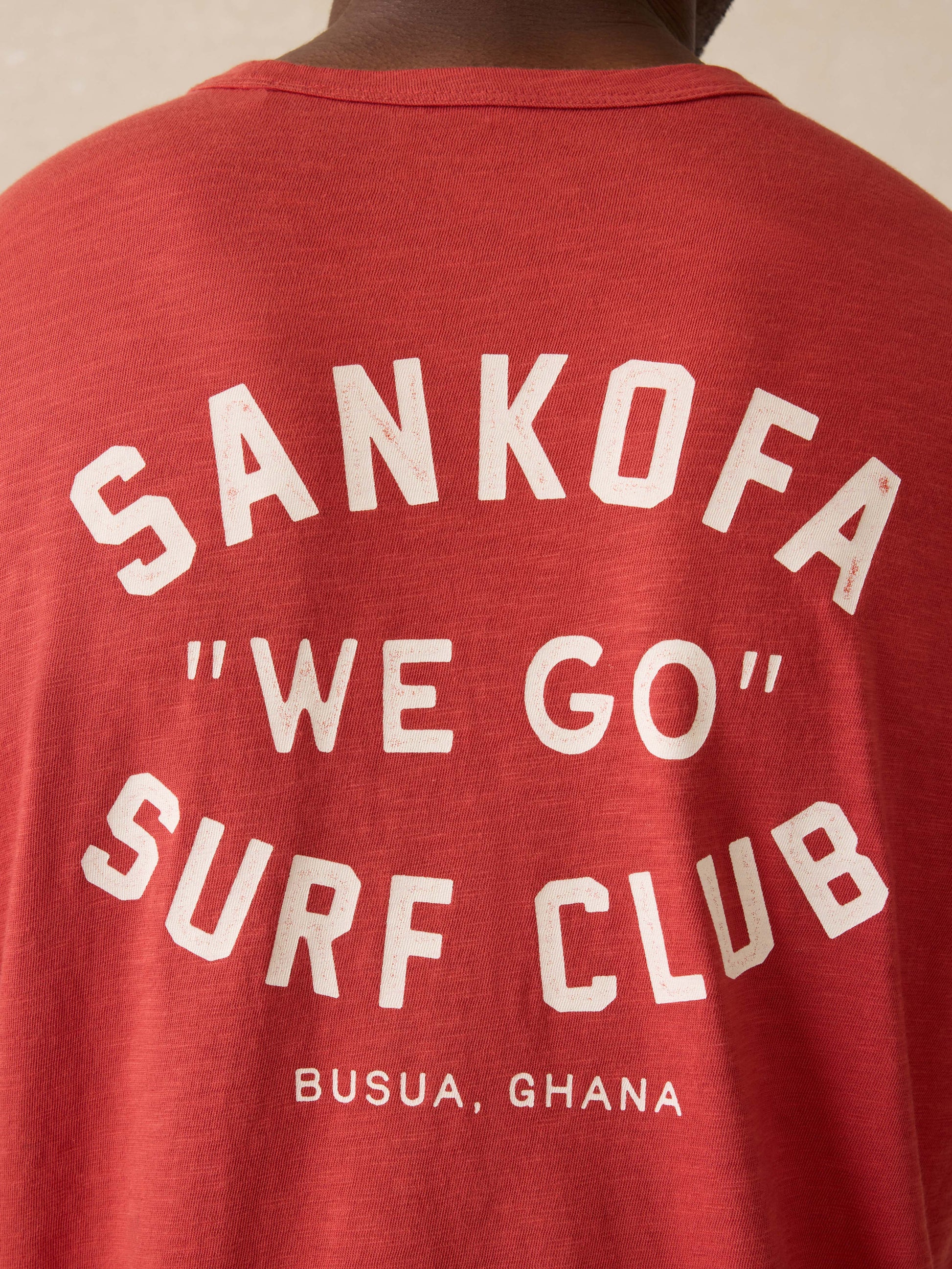 Made from 100% Regenerative Organic Cotton and finished with a lower-impact Ozone Wash, this Sunwashed Tee has that perfectly lived-in look and feel—soft, breathable, and ready for adventure. Featuring artwork that reps Surf Ghana, a surf and skate collective born in the coastal village of Busua, it’s a tee that stands for fun and community.
