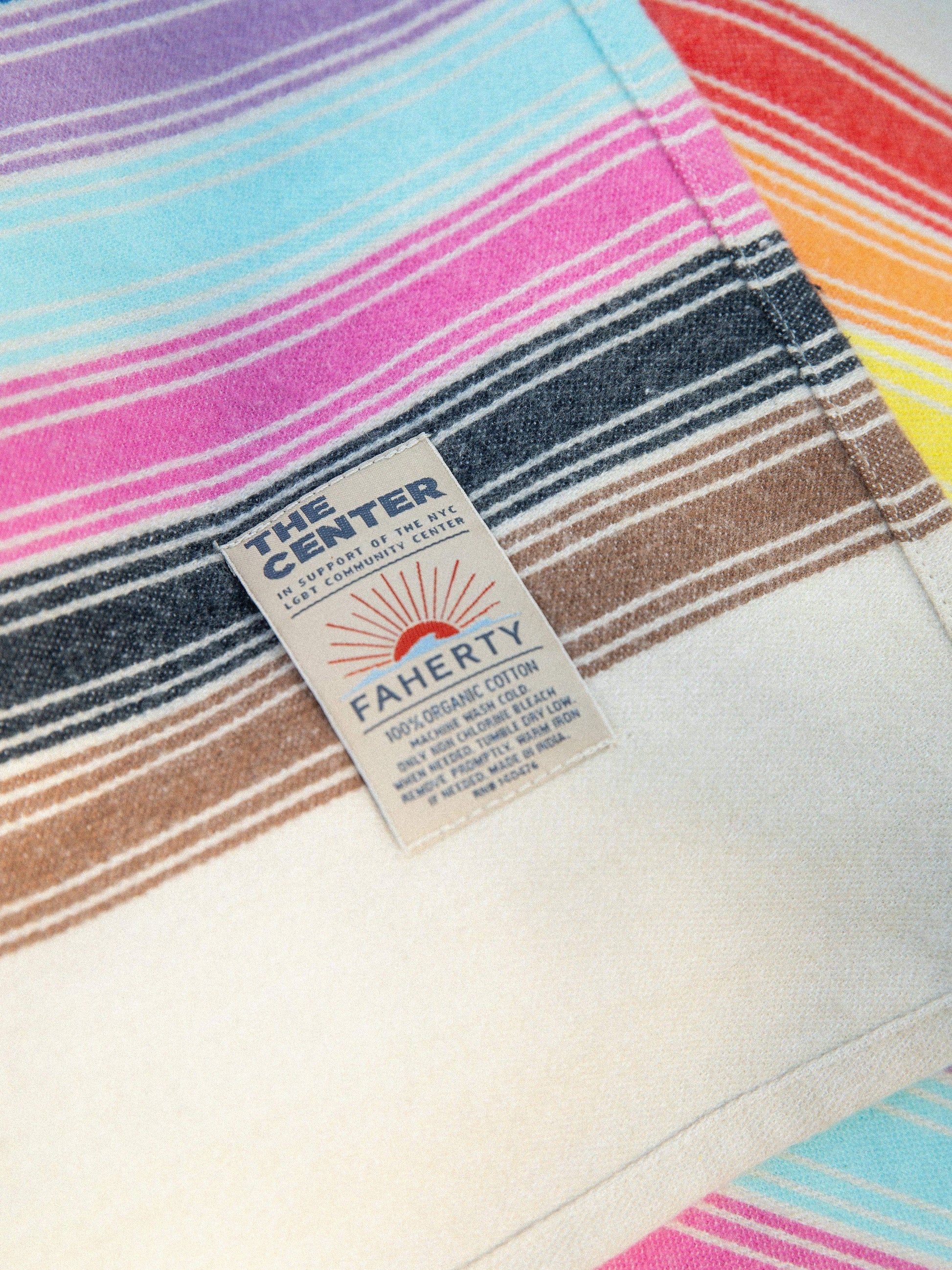 In honor of Pride Month, we partnered with The Center to create a Faherty Adirondack Blanket rendered in the colors of the Pride flag. 100% of the proceeds from the sales of the blanket will be donated to The Lesbian, Gay, Bisexual & Transgender Community Center (The Center). Established in 1983 during the height of the AIDS crisis, The Center provides a safe and affirming place for LGBTQ+ New Yorkers to address the urgent threats facing the community. Over the past 40 years, The Center has grown to meet the changing needs of New York’s LGBTQ+ community, providing space, programming, and services that empower LGBTQ+ people of all ages and backgrounds to lead healthy, successful lives.