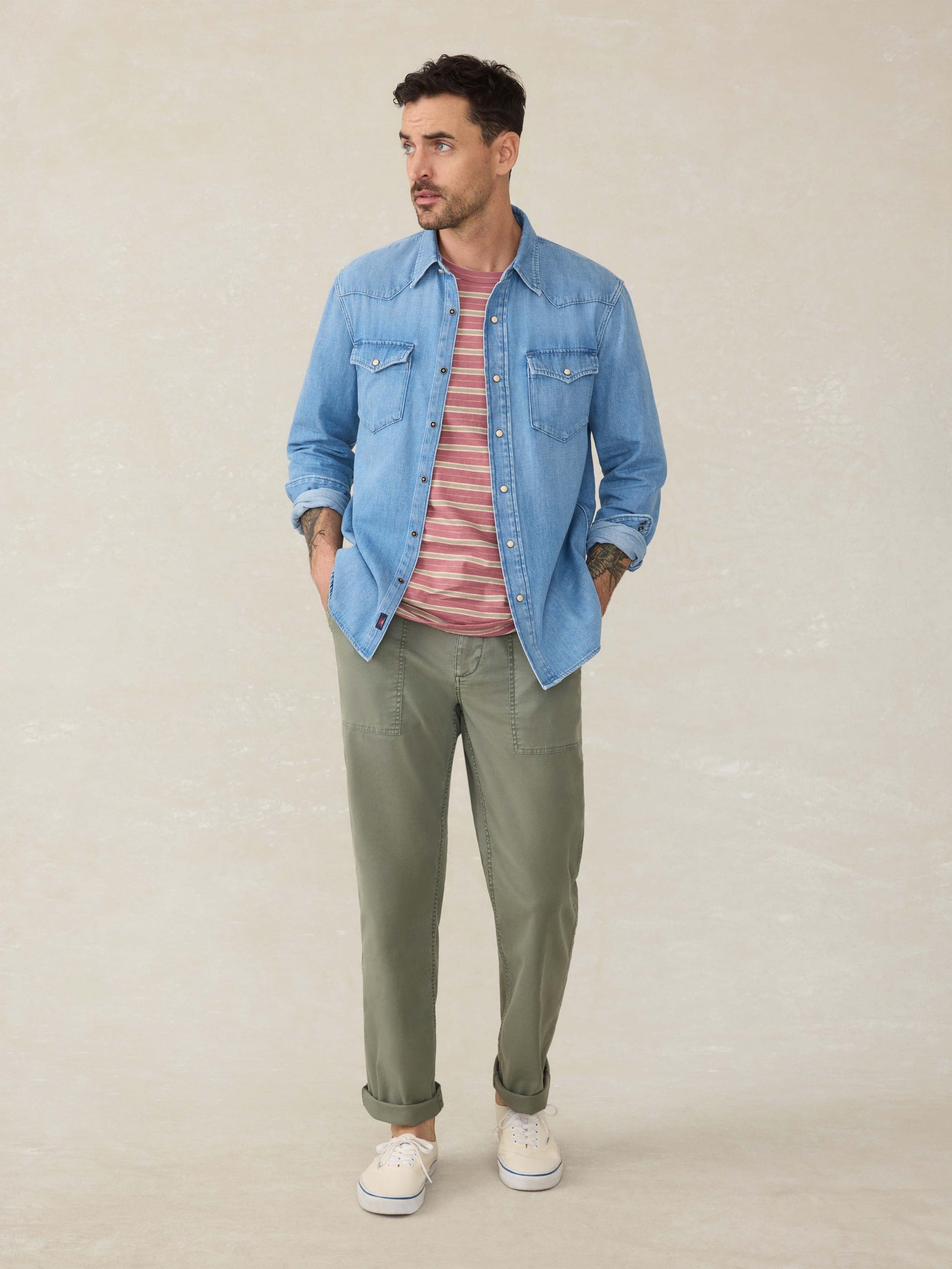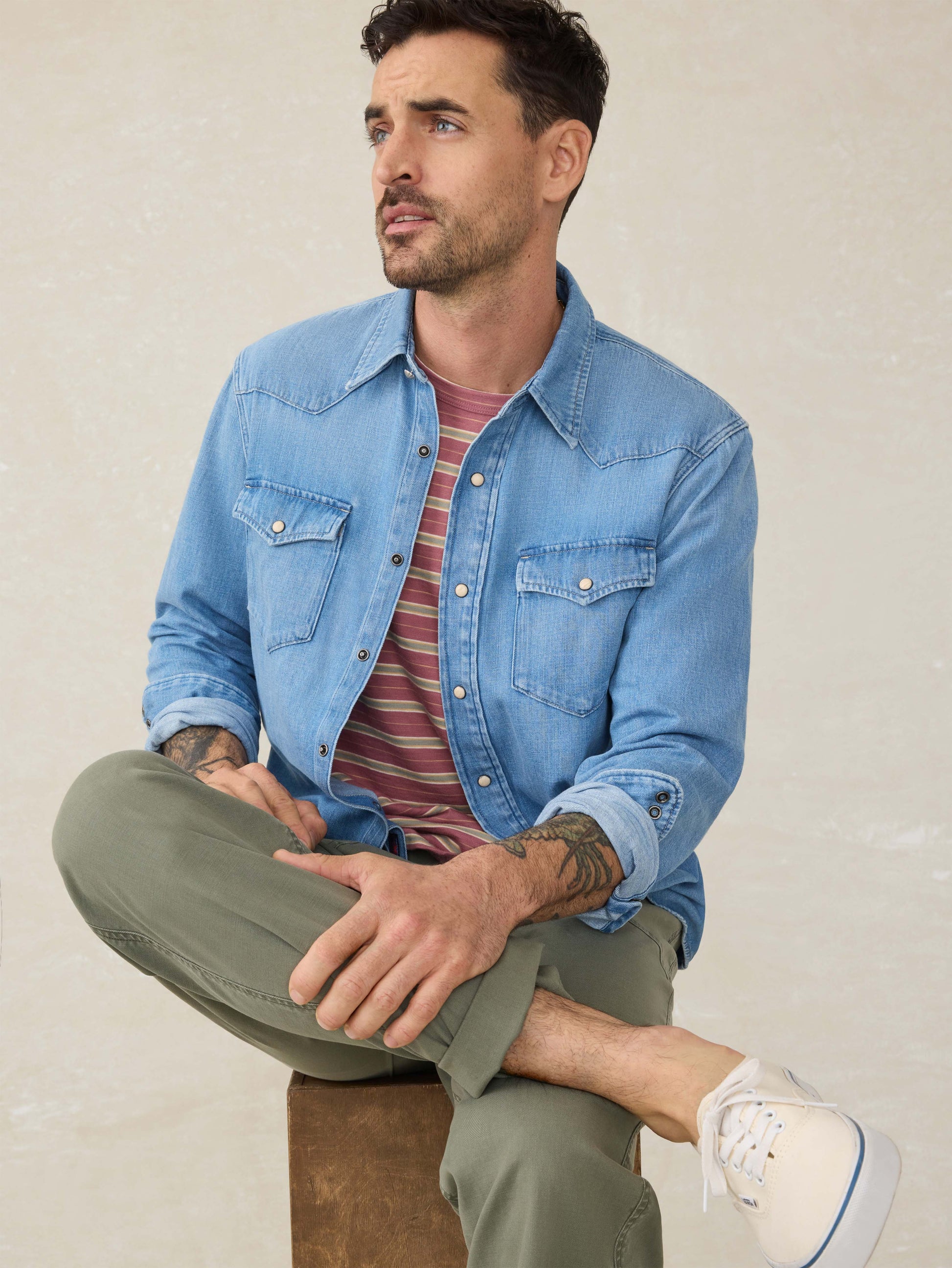 Tailored with iconic Western details, this lightly rugged shirt with snap buttons (a key element of the style), has an old-school appeal that elevates it from your other button-ups. This versatile shirt is one of our faves to leave untucked for a relaxed, lived-in vibe.