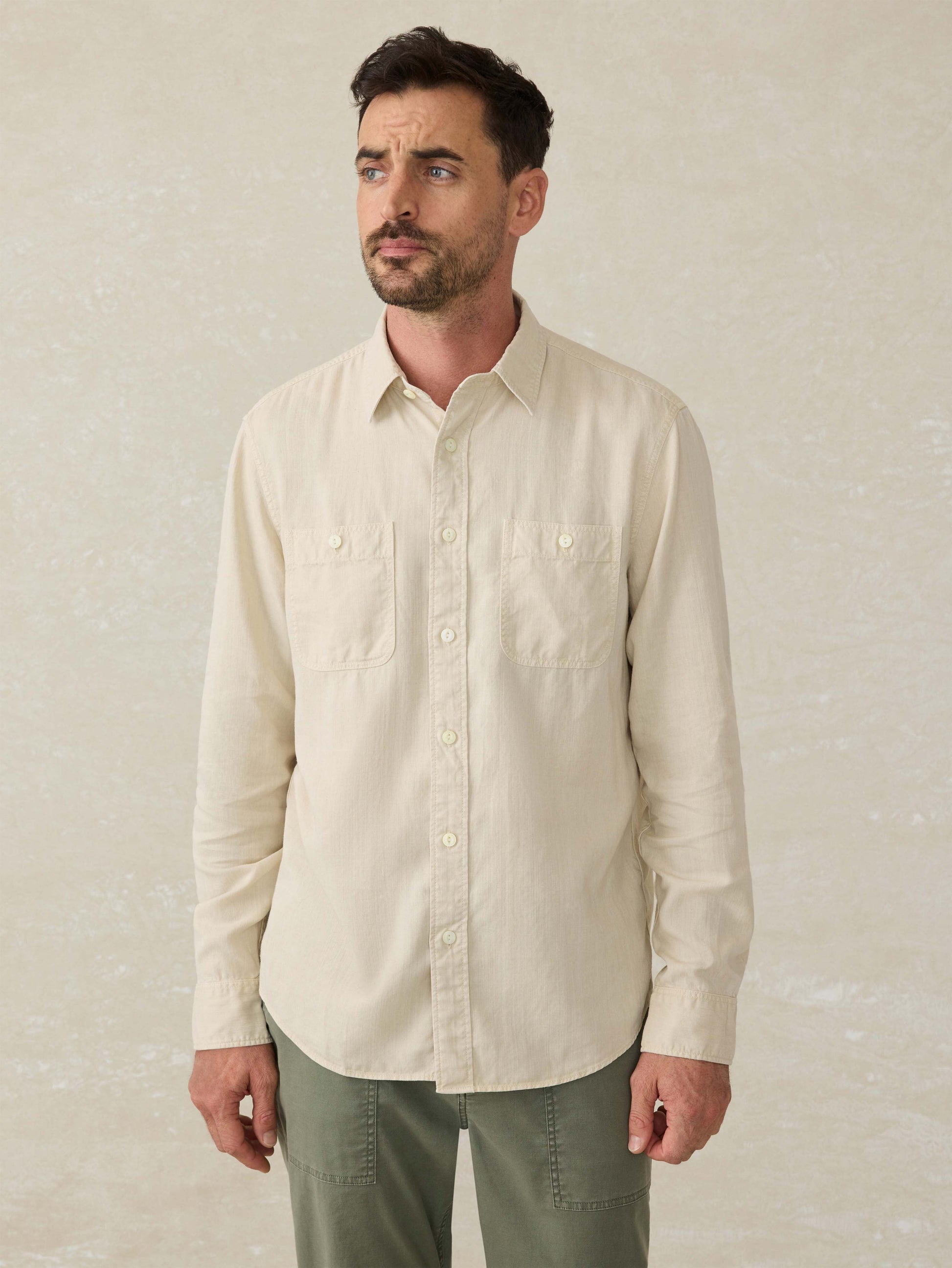 Think of a classic chambray shirt, but super light and super soft. We updated ours in a Tencel and linen blend for the softest hand-feel and improved breathability. With classic styling, this shirt can go anywhere and do anything—on it's own or underneath a jacket or blazer.