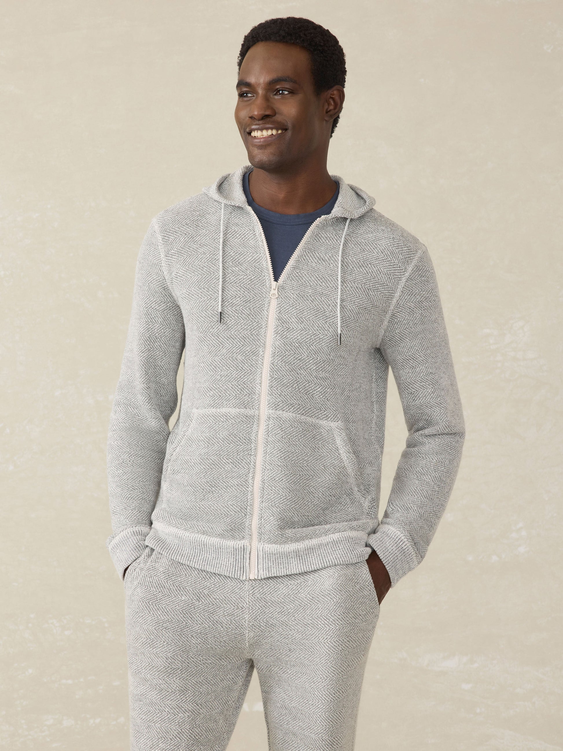 It took our design team years of development to nail the perfect weight and feel of our Whitewater fabric. Softness is literally woven into every thread of this cotton knit, and the special tonal herringbone pattern adds just a touch of texture to this must-have closet staple.