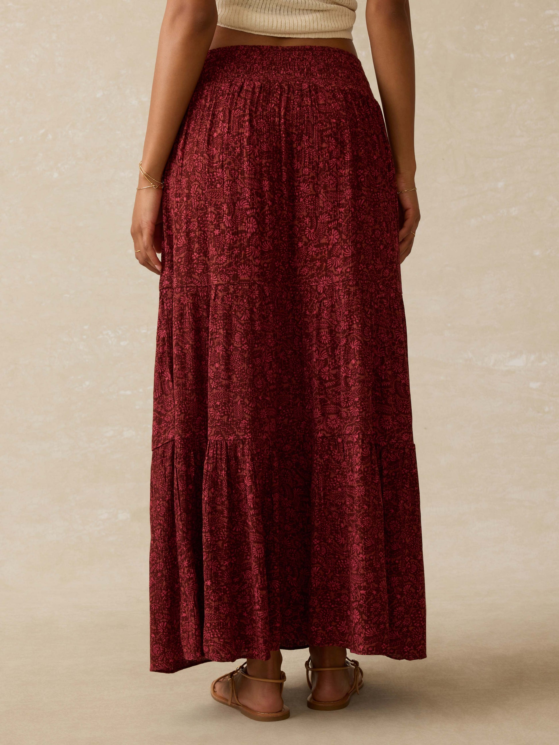 Crafted from a lightweight viscose fabric, our maxi skirt goes with the flow and features an effortless pull-on elastic waist. Delicate tiers add volume for a whimsical and romantic silhouette that pairs seamlessly with a tank or tee. It's the perfect no-fuss choice for achieving an instantly polished look.