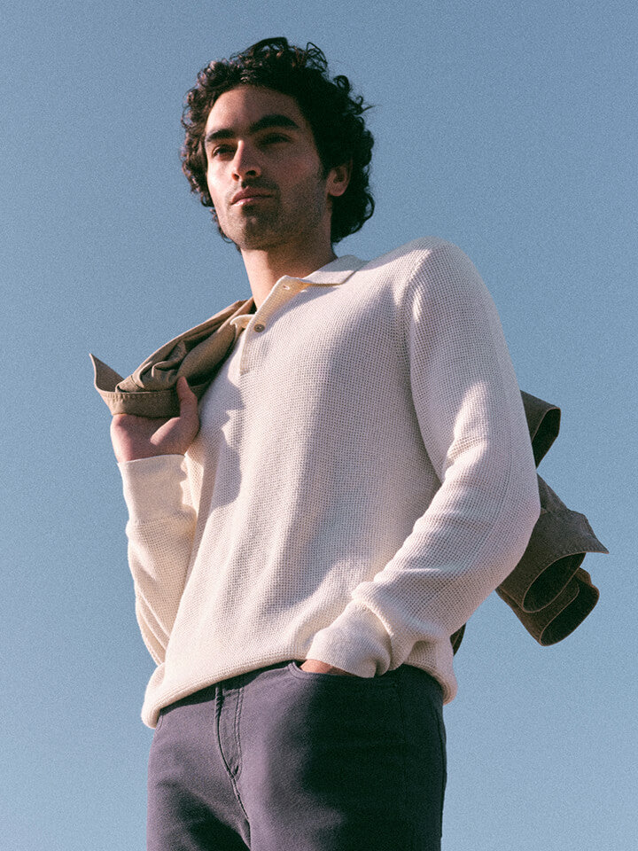 Short-Sleeve Sunwashed Henley - Cream Flint Stripe