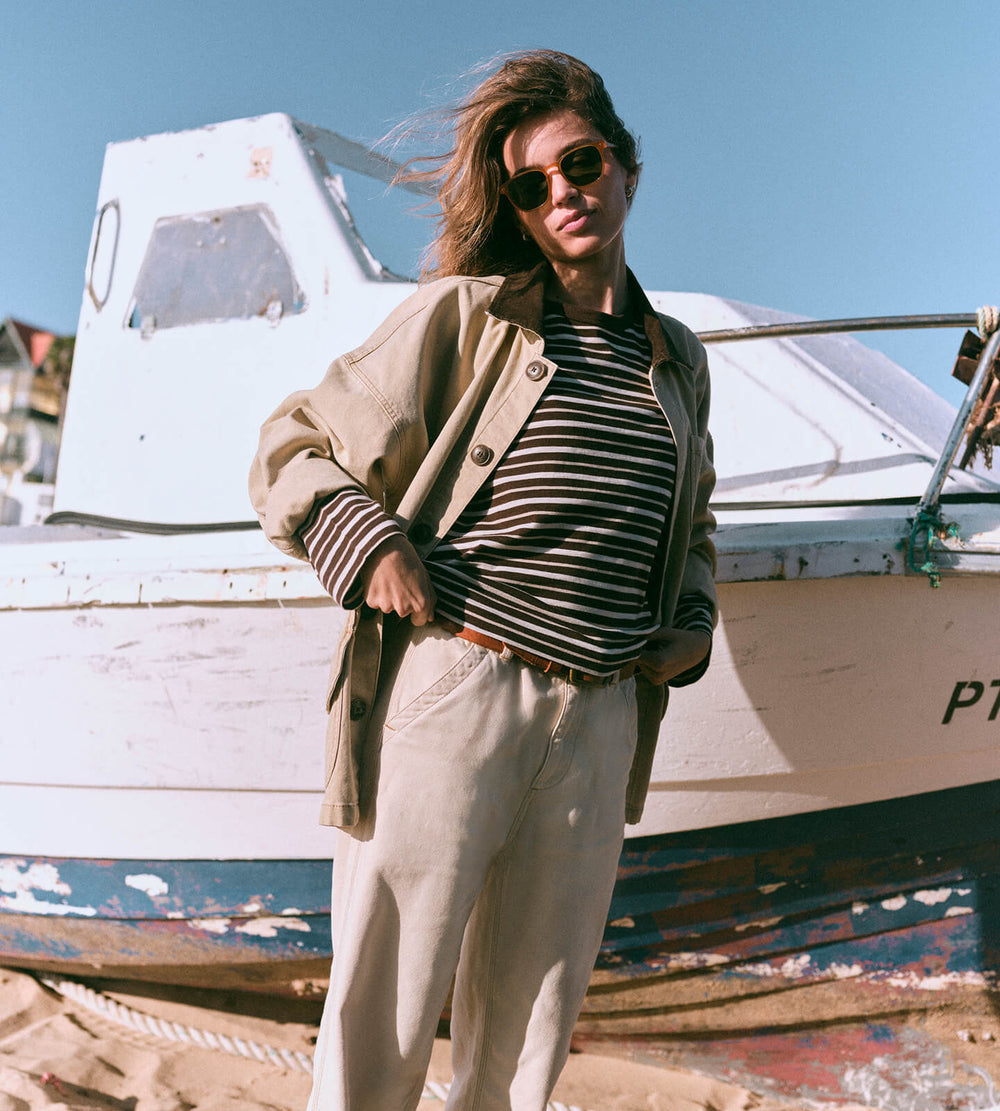 Long-Sleeve Sunwashed Regenerative Cotton Tee - White